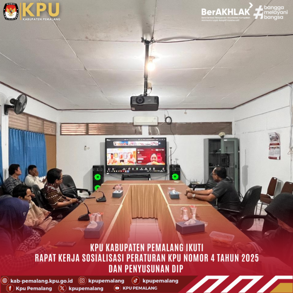 PEMALANG - KPU Kabupaten Pemalang mengikuti Rapat Kerja Sosialisasi Peraturan KPU Nomor 4 Tahun 2025 yang diselenggarakan KPU Provinsi Jawa Tengah secara daring, Kamis (29/1/2025) Kegaiatan tersebut dilaksanakan dalam rangka meningkatkan pemahaman serta menyamakan persepsi terhadap ketentuan terbaru terkait pengelolaan dan pelayanan informasi publik Hadir menjadi narasumber Kadiv Sosdiklihparmas dan SDM KPU DIY. Acara diikuti Ketua berserta seluruh Anggota, serta seluruh Pejabat Struktural dan Petugas Pelayanan Informasi dari 35 KPU kabupaten/Kota se Jawa Tengah #kpupemalang #pemalang #KPUMelayani ....
