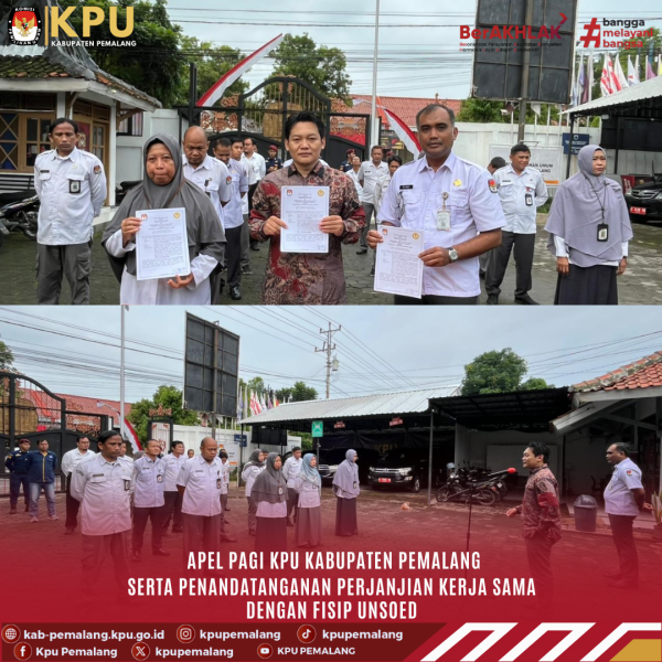 PEMALANG - KPU Kabupaten Pemalang resmi menjalin kolaborasi strategis dengan Fakultas Ilmu Sosial dan Ilmu Politik (FISIP) Universitas Jenderal Soedirman (Unsoed). Penandatanganan Perjanjian Kerja Sama (PKS) ini dilakukan di sela-sela kegiatan Apel Pagi rutin di halaman kantor KPU Pemalang, Senin (2/2/2026). Langkah ini diambil sebagai upaya bersama untuk meningkatkan kualitas penyelenggaraan pemilu, pendidikan pemilih, serta pengembangan kapasitas sumber daya manusia di lingkungan penyelenggara pemilu di Kabupaten Pemalang. #kpupemalang #FIFIPUNSOED #KPUMelayani ....