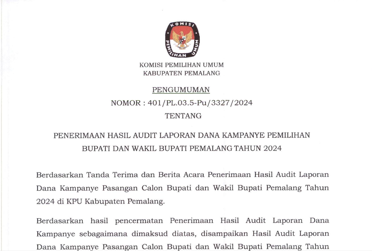 KPU Kabupaten Pemalang dengan Perantara Kantor Pelayanan Kekayaan Negara dan Lelang (KPKNL) Tegal akan melakukan Lelang Logistik Pasca Pemilihan Tahun 2024 dengan Penawaran terbuka (Open Bidding) yang terdiri dari :