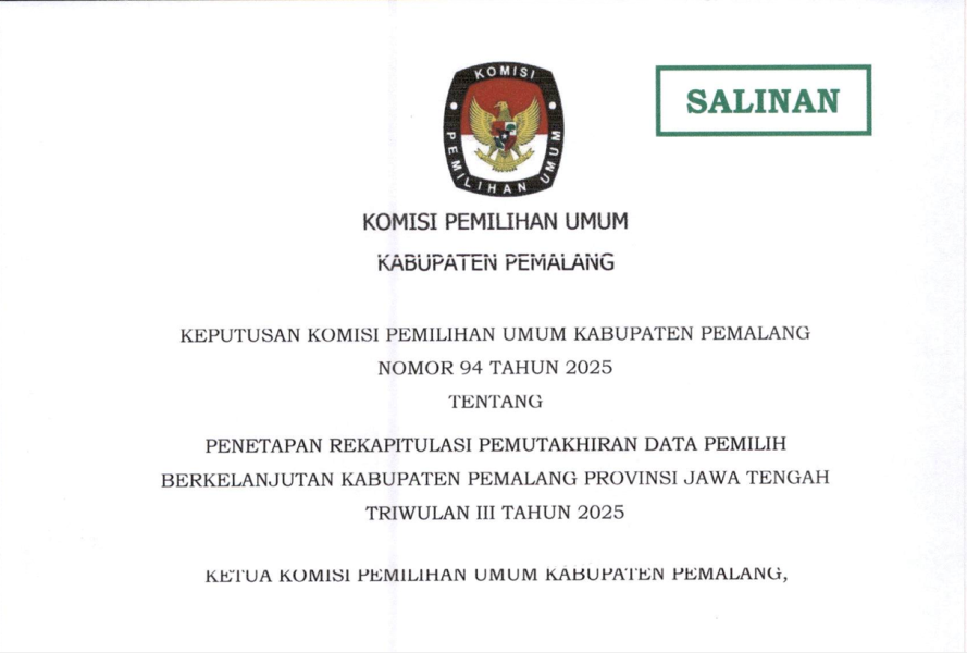 4. Surat Suara Pemilihan Bupati dan Wakil Bupati Pemalang Tahun 2024;