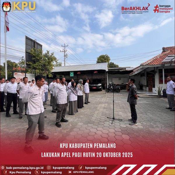 Apel Pagi ini diharapkan tidak hanya meningkatkan disiplin kerja, tetapi juga mempererat kekompakan internal dan memastikan seluruh agenda teknis, komunikasi publik, serta kesejahteraan personel KPU Kabupaten Pemalang berjalan dengan optimal.