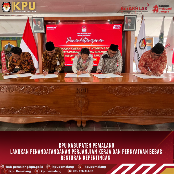 Teguhkan Kinerja, Jaga Integritas KPU Kabupaten Pemalang Lakukan Penandatanganan Perjanjian Kerja dan Pernyataan Bebas Benturan Kepetingan