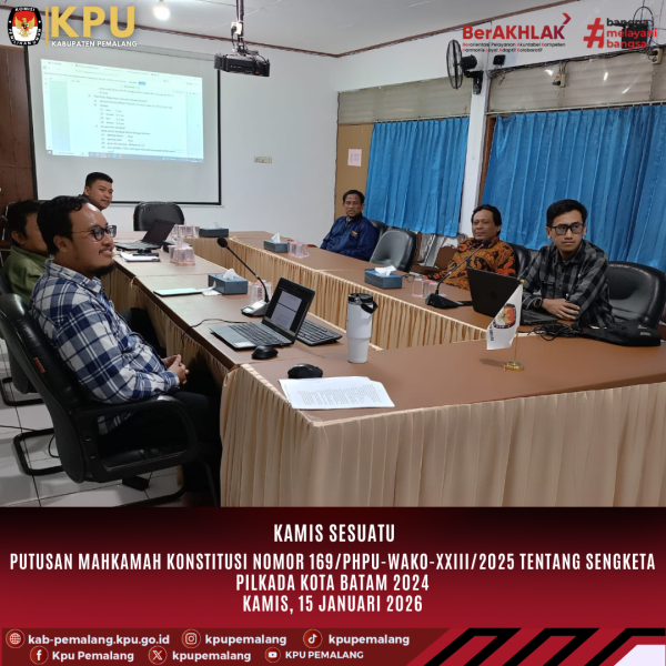PEMALANG- KPU Kabupaten Pemalang mengikuti diskusi Kamis Sesuatu yang membahas Putusan Mahkamah Konstitusi Nomor 169/PHPU-WAKO-XXIII/2025 tentang sengketa pilkada Kota Batam 2024, Kamis (15/1/2025)