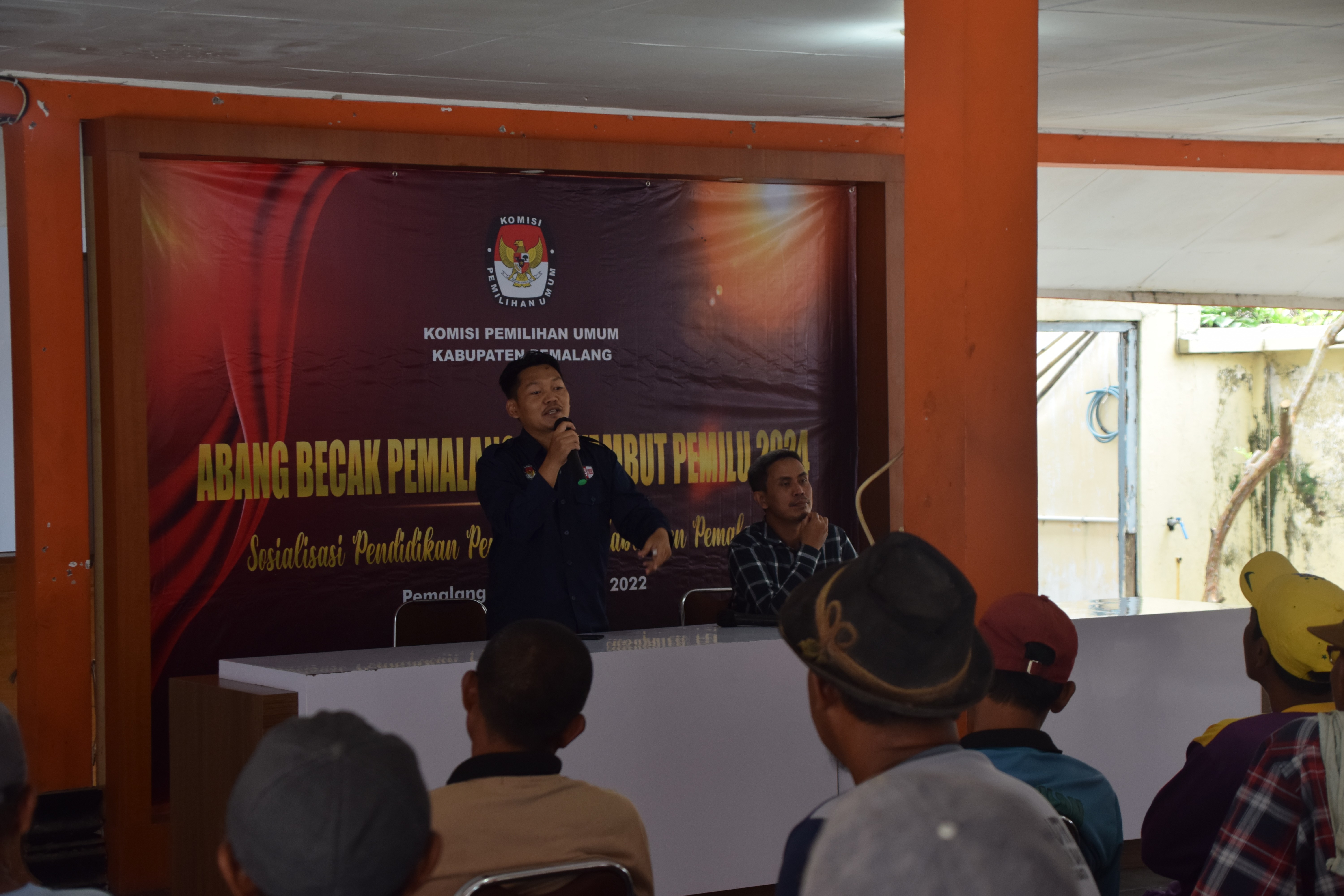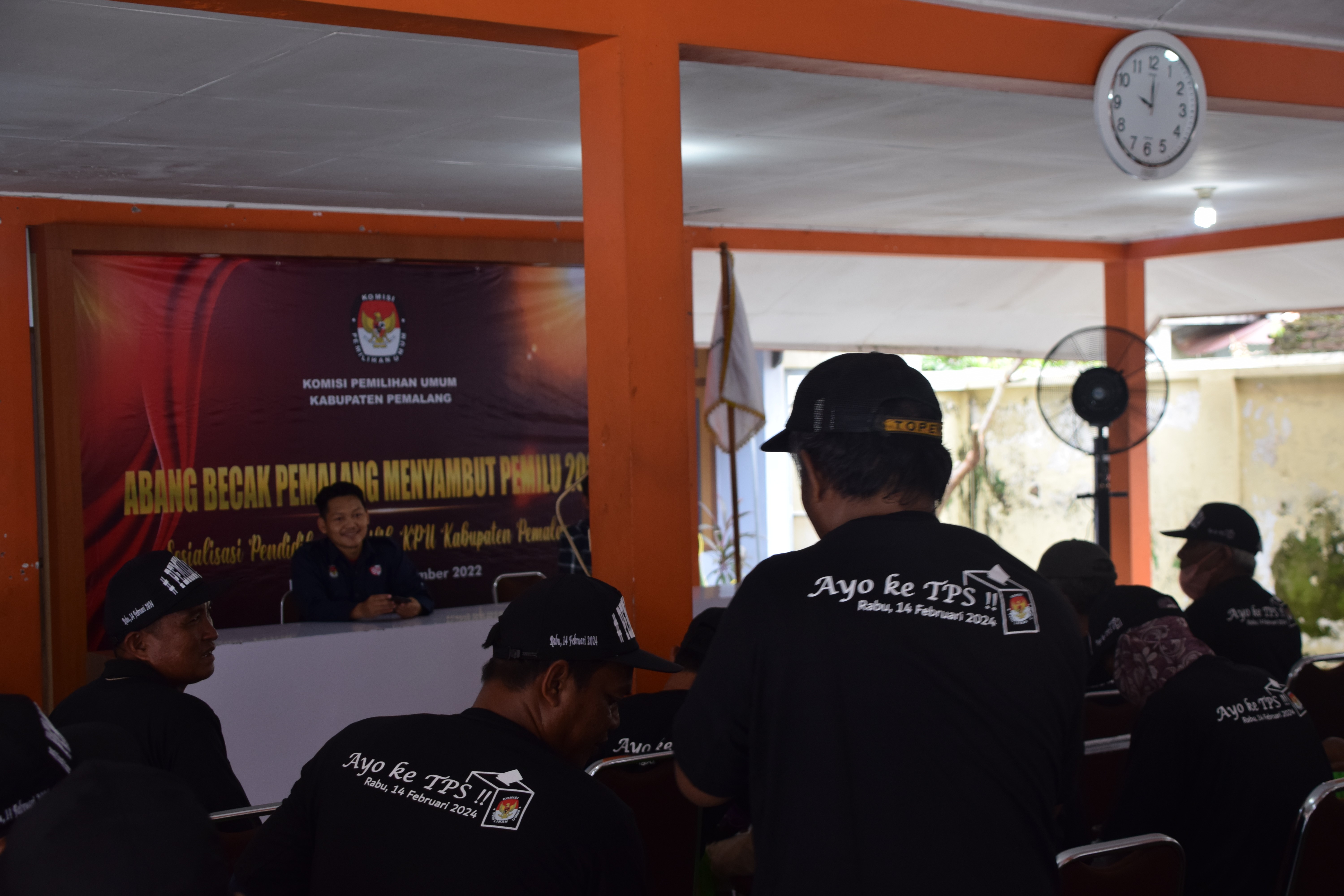 Sabtu, 12 November 2022 pukul 09.00 KPU Kabupaten Pemalang melaksanakan sosialisasi Pemilu 2024 dengan peserta Abang Tukang Becak di Kabupaten Pemalang. Bertempat di Pendopo KPU Kabupaten Pemalang dan dihadiri oleh 64 Abang Tukang Becak. Pada kegiatan tersebut abang tukang becak diberikan kaos, topi dan stiker yang bertemakan pemilu 2024 sebagai bahan sosialisasi kepada Masyarakat Pemalang.