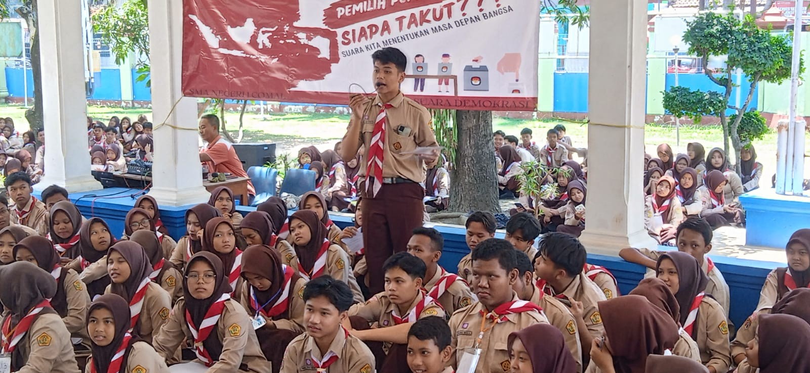Anggota KPU Kabupaten Pemalang, HARUN GUNAWAN menjadi narasumber pada kegiatan Projek Penguatan Profil Pelajar Pancasila (P5) di SMA Negeri 1 Comal, Jum'at (22/09/2023) pukul 10.000 WIB. Kegiatan tersebut bertema Siapa Takut Suara Kita Menentukan Masa Depan Bangsa Di Sekolahku, yang di ikuti oleh kelas XI Materi yang disampaikan yakni terkait dengan demokrasi dan bagaimana pemilu di Indonesia dari tahun ke tahun. Kegiatan tersebut diharapkan mampu memberikan pengetahuan tentang pentingnya pemilu.