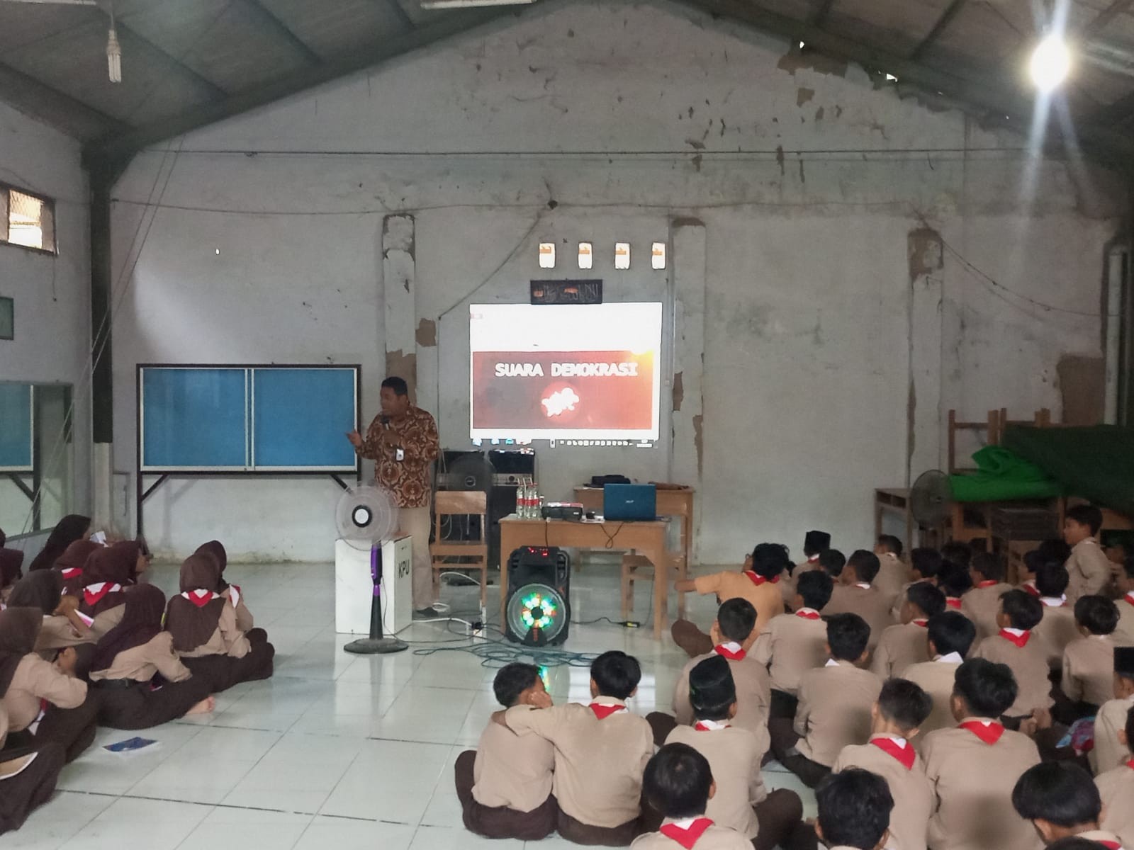 Anggota KPU Kabupaten Pemalang, Wahyono menjadi narasumber pada kegiatan Projek Penguatan Profil Pelajar Pancasila (P5) di SMP Islam Pemalang, Sabtu (14/10/2023) pukul 09.00 WIB. Kegiatan tersebut bertema Demokrasi, yang di ikuti oleh kelas VII. Materi yang disampaikan yakni terkait dengan demokrasi dan bagaimana pemilu di Indonesia dari tahun ke tahun. Kegiatan tersebut diharapkan mampu memberikan pengetahuan tentang pentingnya pemilu.
