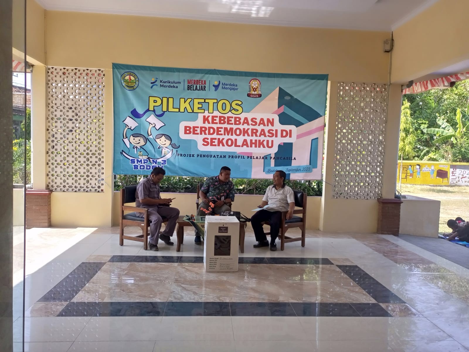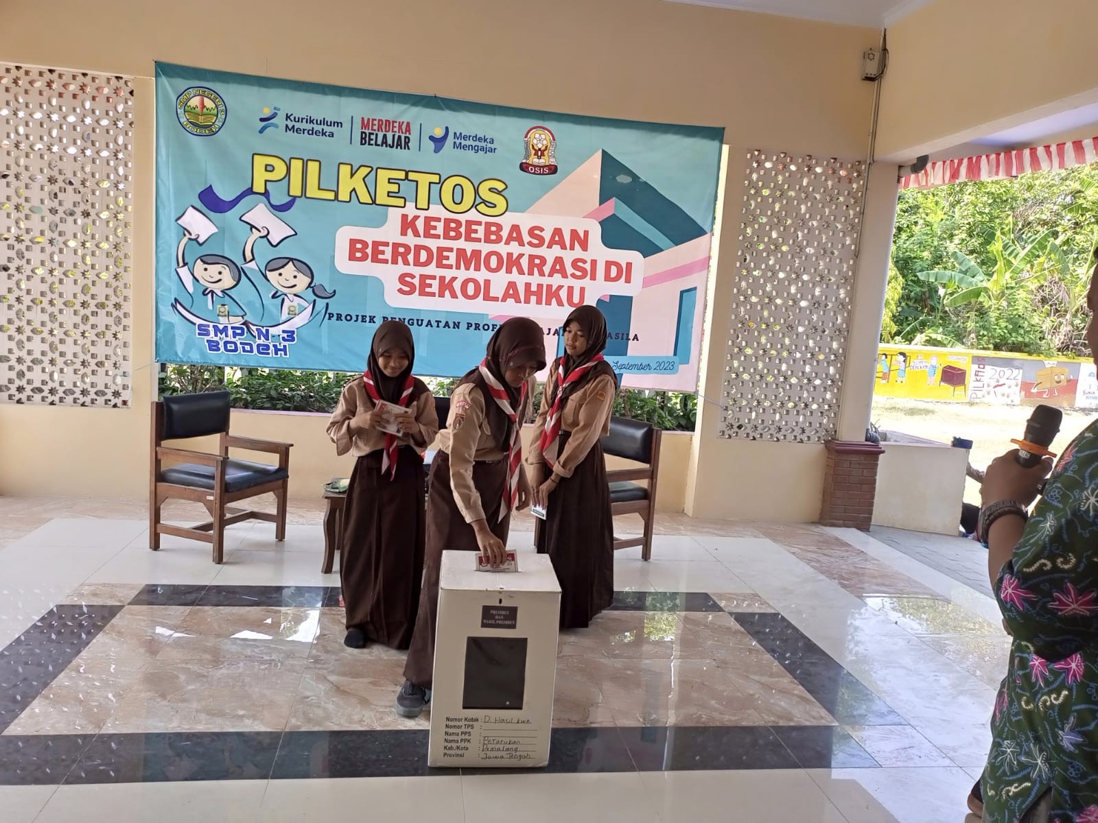 Anggota KPU Kabupaten Pemalang, Wahyono menjadi narasumber pada kegiatan Projek Penguatan Profil Pelajar Pancasila (P5) di SMP Negeri 3 Bodeh, Sabtu (16/09/2023) pukul 09.00 WIB. Kegiatan tersebut bertema Kebebasan Berdemokrasi Di Sekolahku, yang di ikuti oleh kelas VII VII IX. Materi yang disampaikan yakni terkait dengan demokrasi dan bagaimana pemilu di Indonesia dari tahun ke tahun. Kegiatan tersebut diharapkan mampu memberikan pengetahuan tentang pentingnya pemilu.