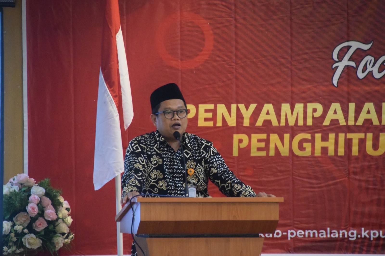 Rapat dibuka oleh Ketua KPU Kab. Pemalang Mustaghfirin, dilanjutkan dengan sambutan Plh. Bupati Pemalang yang diwakili oleh Plh. Bakesbangpol Kabupaten Pemalang Eko Edi Prihartanto. Selanjutnya penyampaian materi oleh Anggota KPU Harun Gunawan yang dimoderatori oleh Anggota KPU Wahyono.
