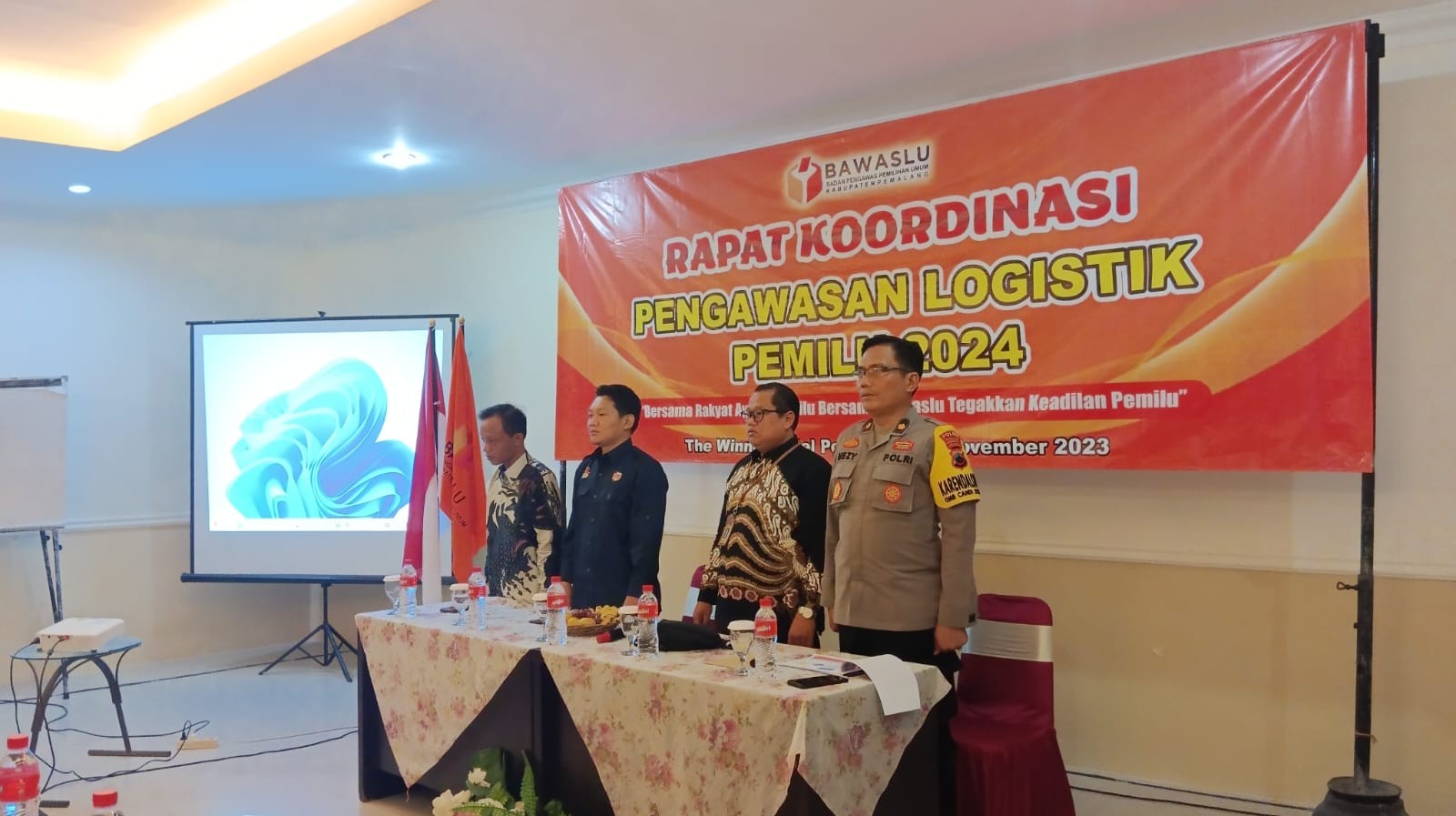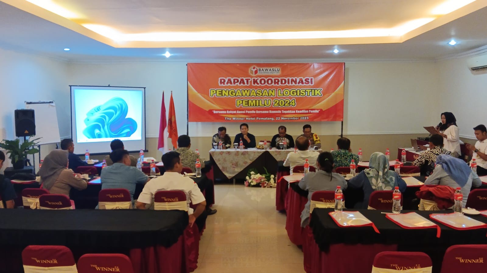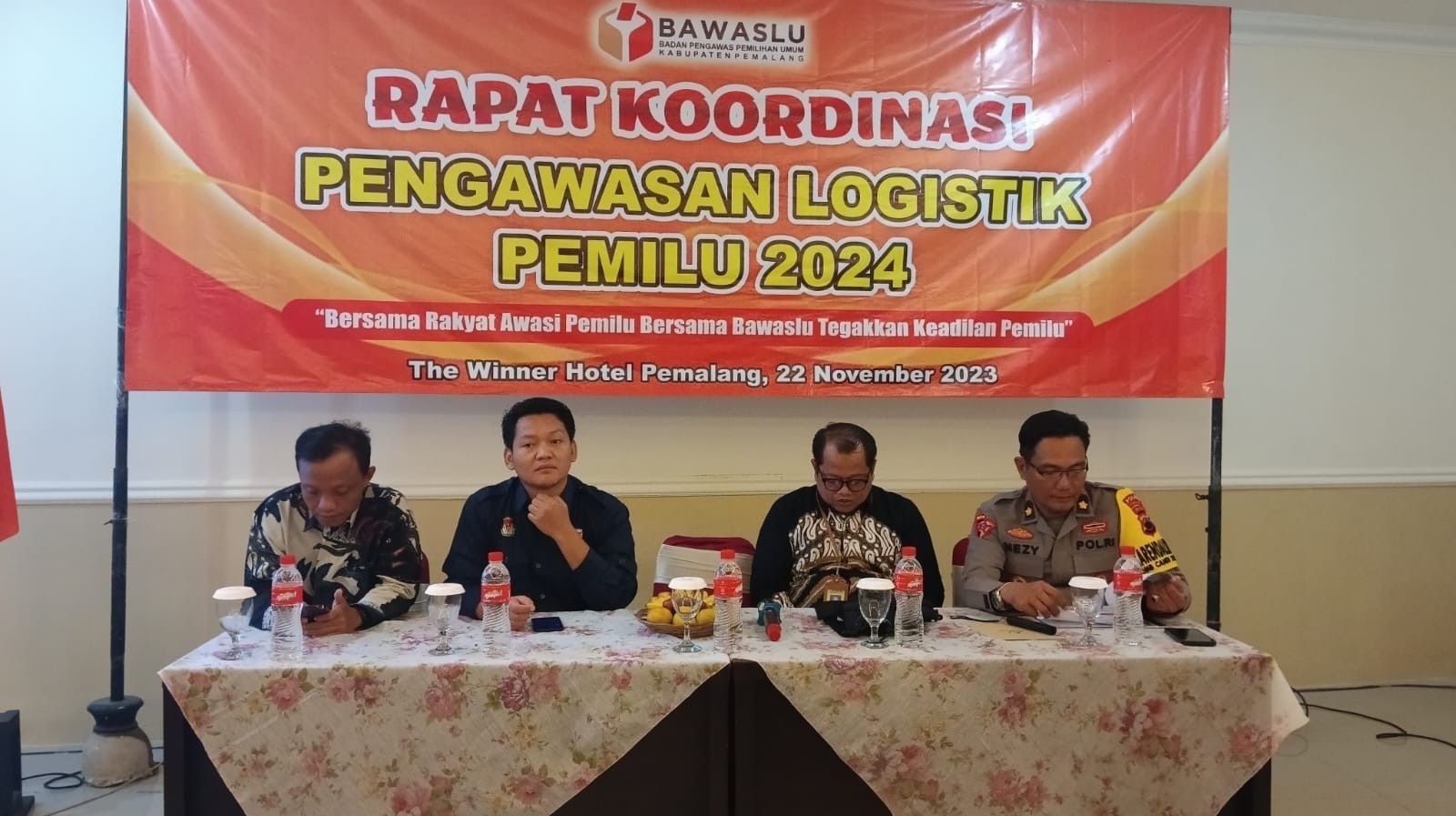 Ketua KPU Kabupaten Pemalang Agus Setiyanto menjadi narasumber pada Rapat Koordinasi Pengawasan Logistik Pemilu Tahun 2024 yang diselenggarakan oleh Bawaslu kabupaten Pemalang pada hari Rabu (22/11/2023) di The Winner Hotel Pemalang. Hadir pada rakor tersebut yakni Polres Pemalang, Kodim 0711/Pemalang, Bakesbangpol, dan Satpol PP serta Panwascam sek-Kabupaten Pemalang. Materi yang disampaikan yakni terkait logistik pada Pemilu 2024. Selain KPU diundang pula untuk menjadi narasumber yakni Kabag Ops Polres Pemalang, Kompol Amin Mezy Syafiudin, S.H., M.H.