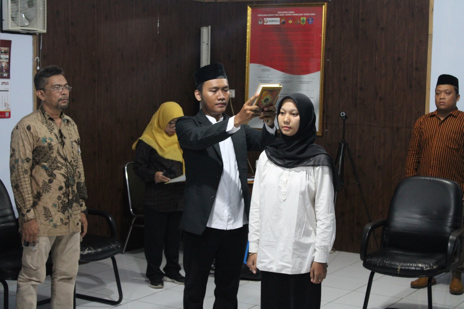 Pelantikan PAW PPS Kelurahan Kebondalem di hadiri oleh Ketua Bawaslu Kabupaten Pemalang, PPK Pemalang, dan PPS Kelurahan Kebondalem.