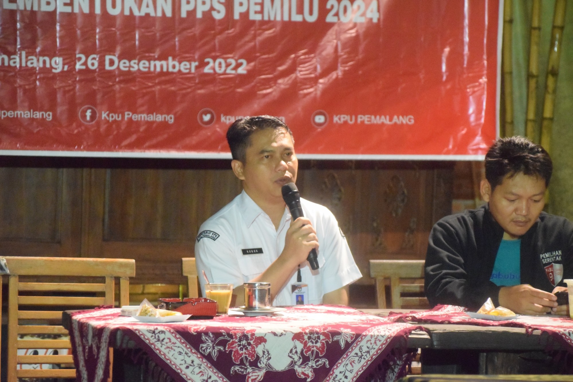 Senin, 26 Desember 2022 Pukul 20.00 KPU Kabupaten melaksanakan Ngobrol Bareng Komunitas dalam rangka Sosialisasi Pembentukan PPS Pemilu 2024. Bertempat di New Locomotife Teater dengan peserta wartawan media cetak, pegiat media sosial dan komunitas disabilitas di Kabupaten Pemalang. Kegiatan dibuka oleh Sekretaris KPU Kabupaten Pemalang Kurnia Dian Wijanarko, dilanjutkan penyampaian sosialisasi dan diskusi oleh Anggota KPU Divisi Sosdiklih, Parmas dan SDM Agus Setiyanto.