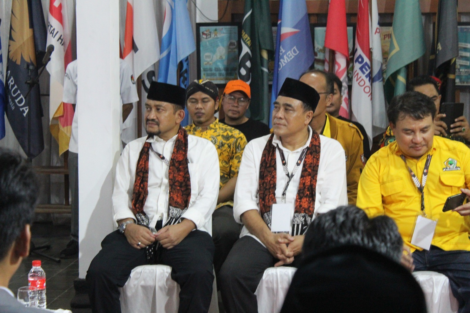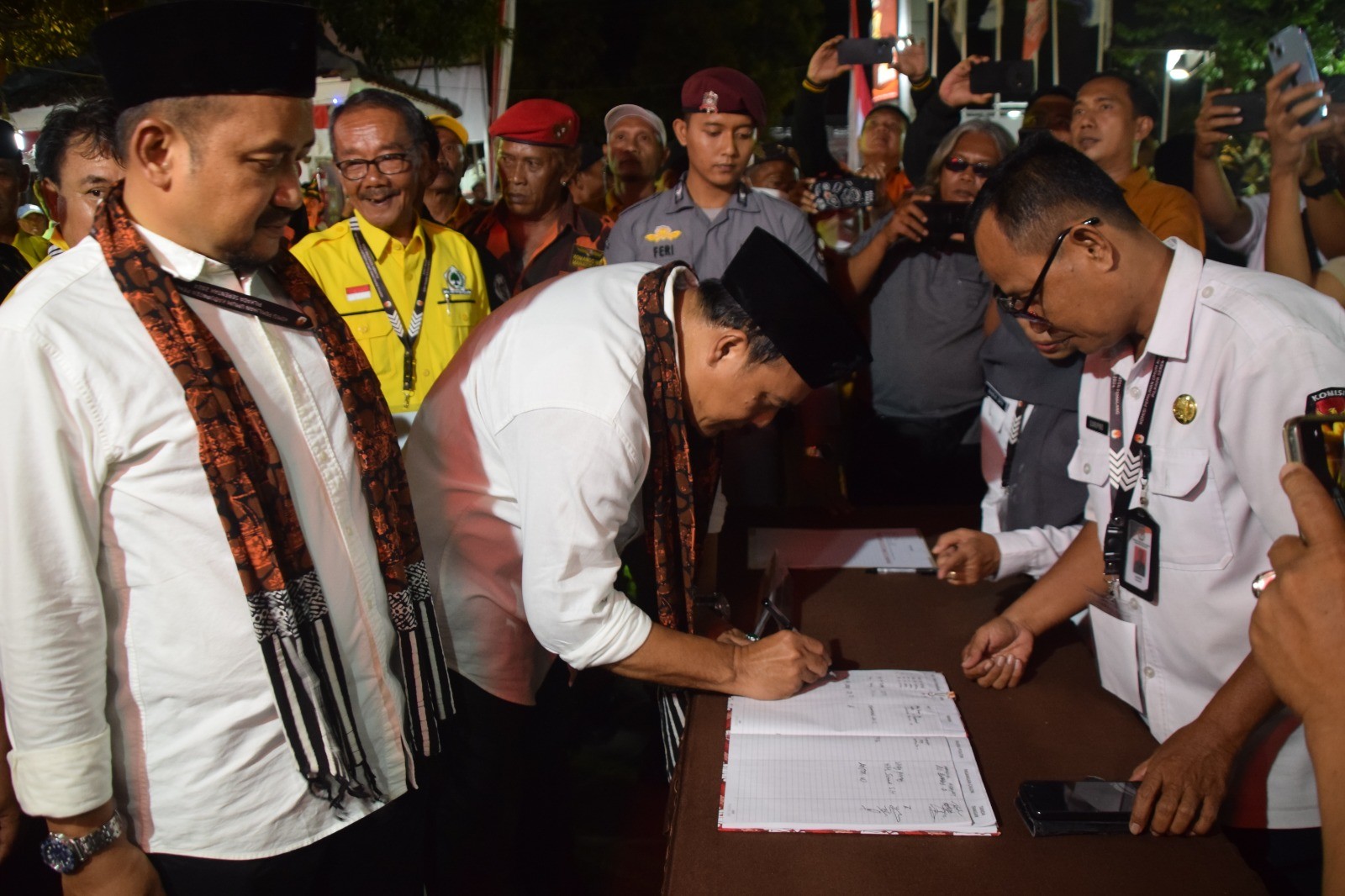 PEMALANG - Komisi Pemilihan Umum Kabupaten Pemalang menerima Pendaftaran Bakal Pasangan Calon (Bapaslon) Bupati dan Wakil Bupati Pemalang Tahun 2024 atas nama Anom Widiyantoro, SE, MM dan Nurkholes, S.H, M.Si pada hari ke tiga masa pendaftaran Pilbup 2024, Kamis (29/8/2024) pada pukul 21.00 WIB yang di usul oleh Partai Golkar, PSI, Perindo, Buruh dan Gelora. Berkas diterima oleh Ketua KPU Kabupaten Pemalang dan selanjutnya diserahkan ke Anggota KPU Kabupaten Pemalang Divisi Teknis Penyelenggara dan Operator Silon untuk dilakukan verifikasi dokumen.