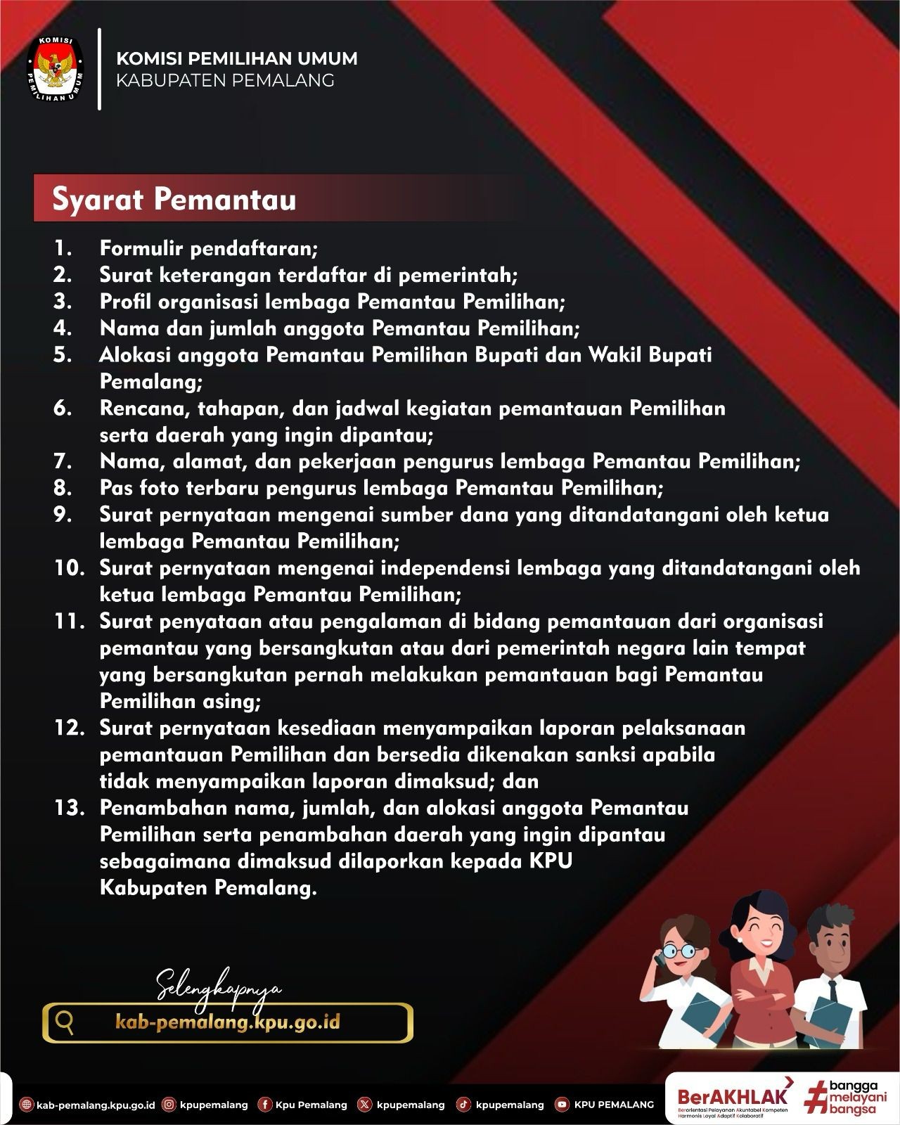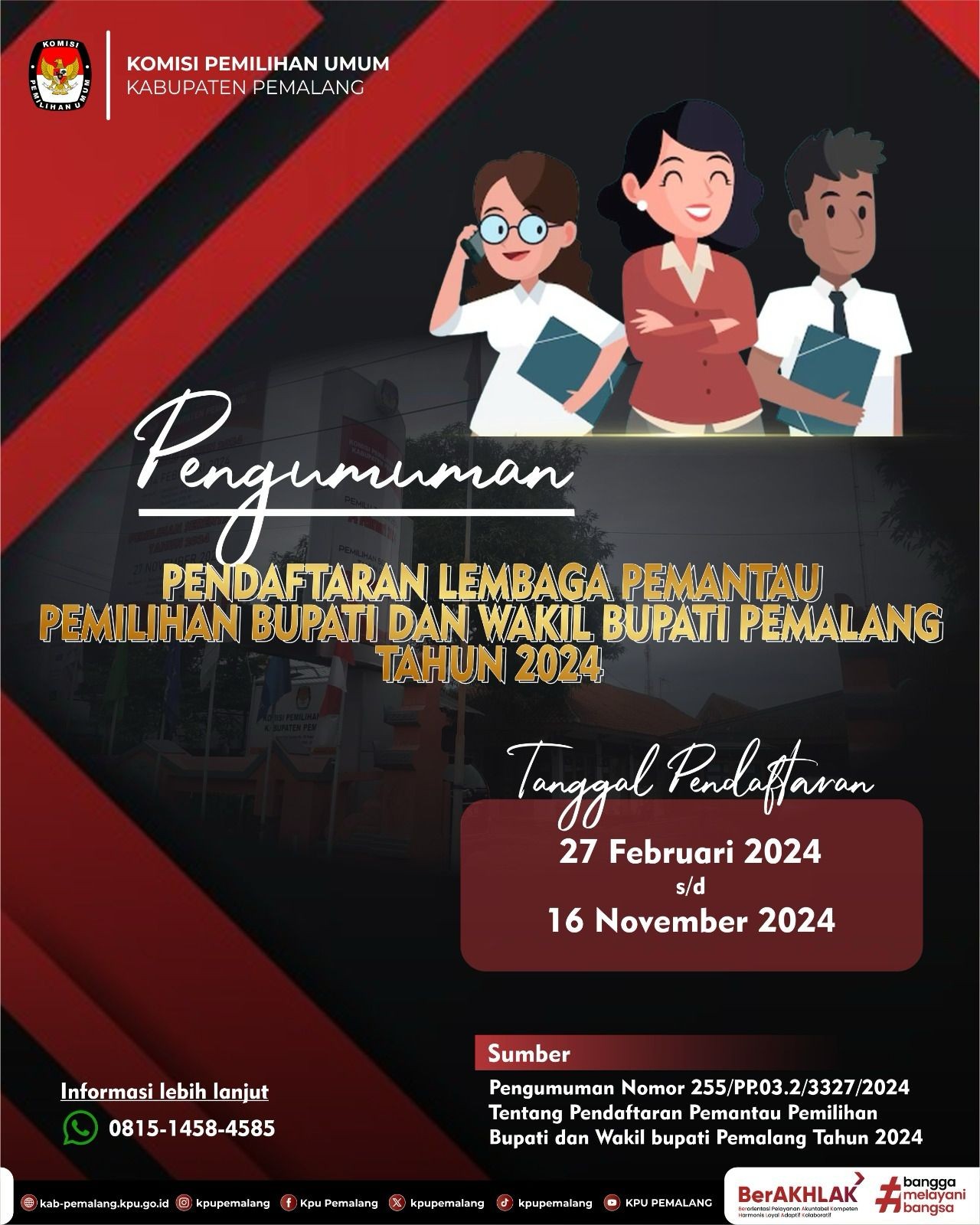 PENGUMUMAN NOMOR 255/PP.03.2/3327/2024 TENTANG PENDAFTARAN PEMANTAU PEMILIHAN BUPATI DAN WAKIL BUPATI PEMALANG TAHUN 2024