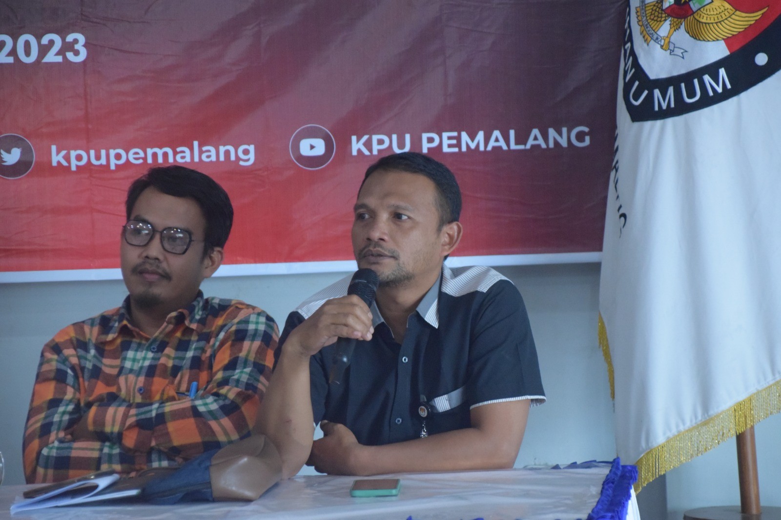 KPU Kabupaten Pemalang menggelar rapat kerja logistik dan konsolidasi persiapan tahapan kampanye Pemilu 2024 di RM Serba Sambal Pemalang, Kamis (23/11/2023) pukul 13.00 WIB. Hadir pada raker tersebut seluruh PPK se Kabupaten Pemalang. Ketua KPU Agus Setiyanto memberikan sambutan seklagus membuka raker tersebut. Selanjutnya penyampaian materi sekaligus perkenalan oleh Seluruh Anggota KPU Kabupaten Pemalang yang terlantik kepada PPK. Raker diakhiri dengan sesi diskusi dan foto bersama.