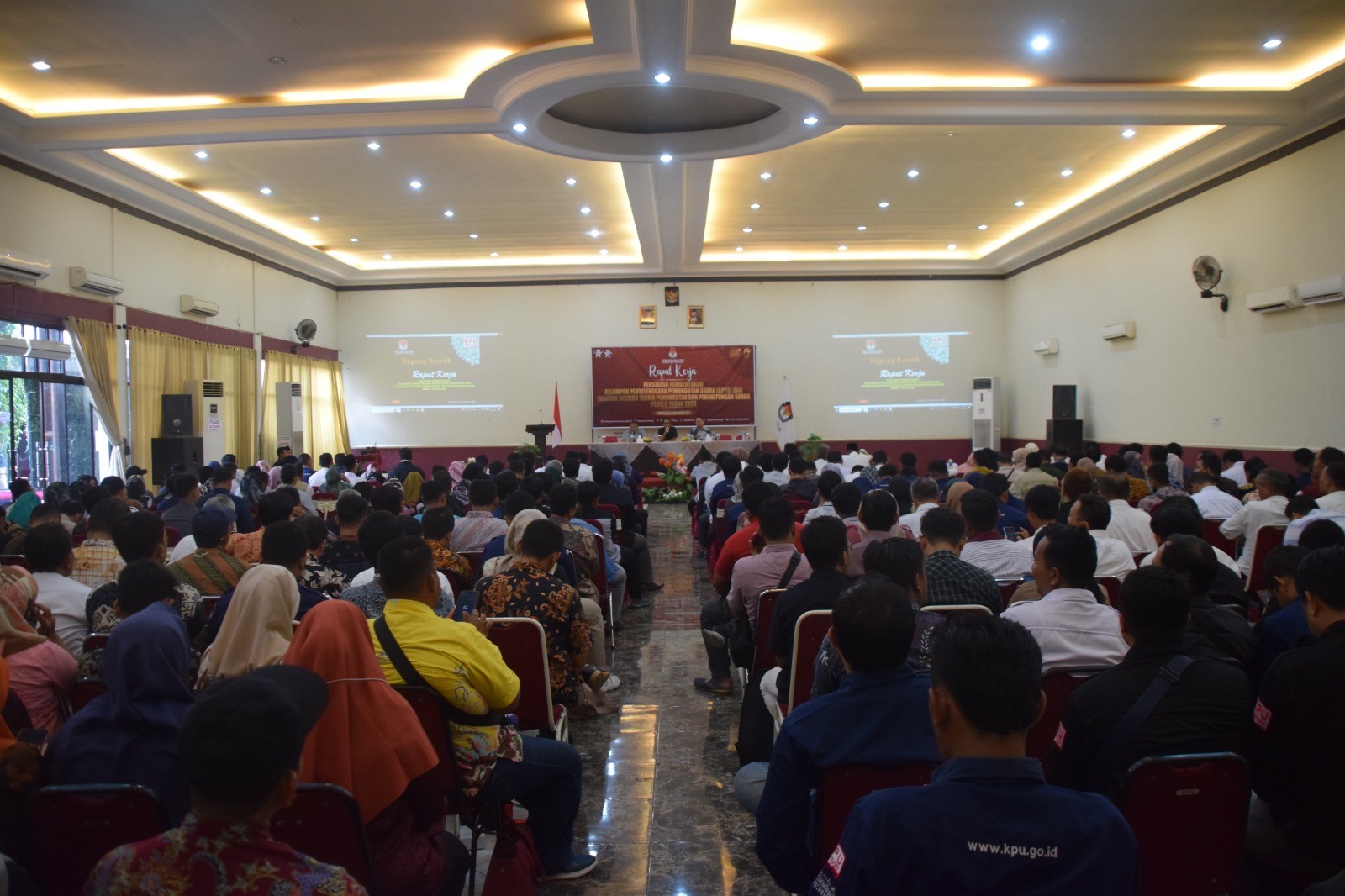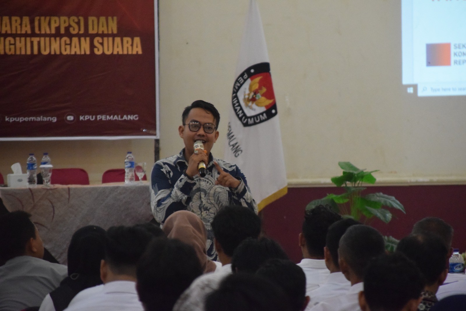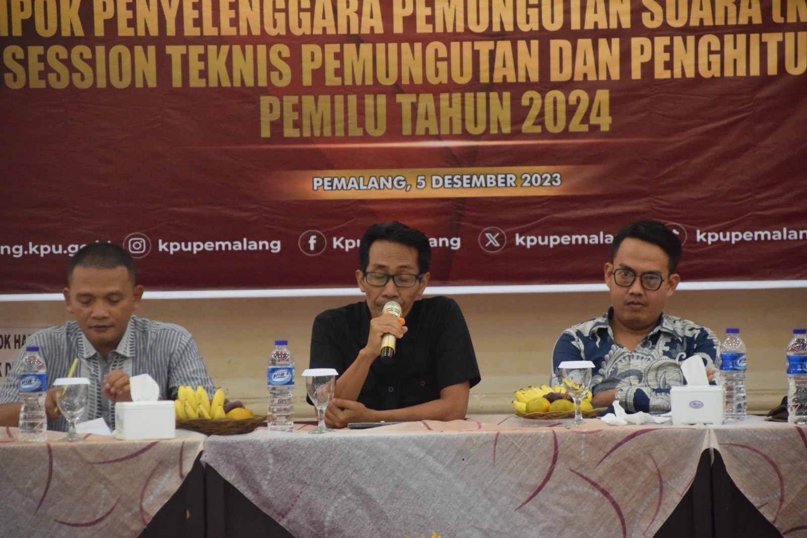KPU Pemalang menggelar rapat kerja Persiapan Pembentukan Kelompok Penyelenggara Pemungutan Suara (KPPS) dan Sharing Session Teknis Pemungutan dan Penghitungan Suara Untuk Pemilu Tahun 2024 dengan peserta seluruh PPK dan Ketua PPS se-Kabupaten Pemalang, Selasa (05/12/2024) pukul 14.00 WIB di Hotel The Winner Pemalang. Acara dibuka oleh Anggota KPU Kabupaten Pemalang Supriyanto sekaligus memberikan sambutan. Selanjutnya penyampaian materi sekaligus sesi tanya jawab bersama Anggota KPU Kabupaten Pemalang Agung Budi Nugroho dan Umar Taufik terkait dengan Persiapan Pembentukan KPPS dan Persiapan Teknis Pemungutan dan Penghitungan Suara Untuk Pemilu Tahun 2024.