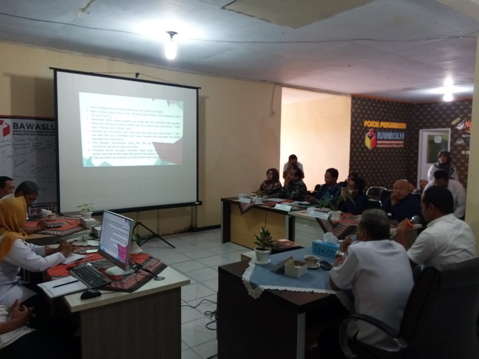 Rabu, 22 Juni 2022 Pukul 09.30 Ketua KPU Kabupaten Pemalang Mustaghfirin beserta Divisi Perencanaan Data dan Informasi Aida Yunirahmawati dan Kasubag Rendatin menghadiri Rapat Kerja Pengawasan Pemutakhiran Data Pemilih Berkelanjutan yang diselenggarakan oleh Bawaslu Kabupaten Pemalang di ruang rapat Kantor Bawaslu Kabupaten Pemalang. Diundang pula Disdukcatpil Kabupaten Pemalang dan Kemenag Kabupaten Pemalang.