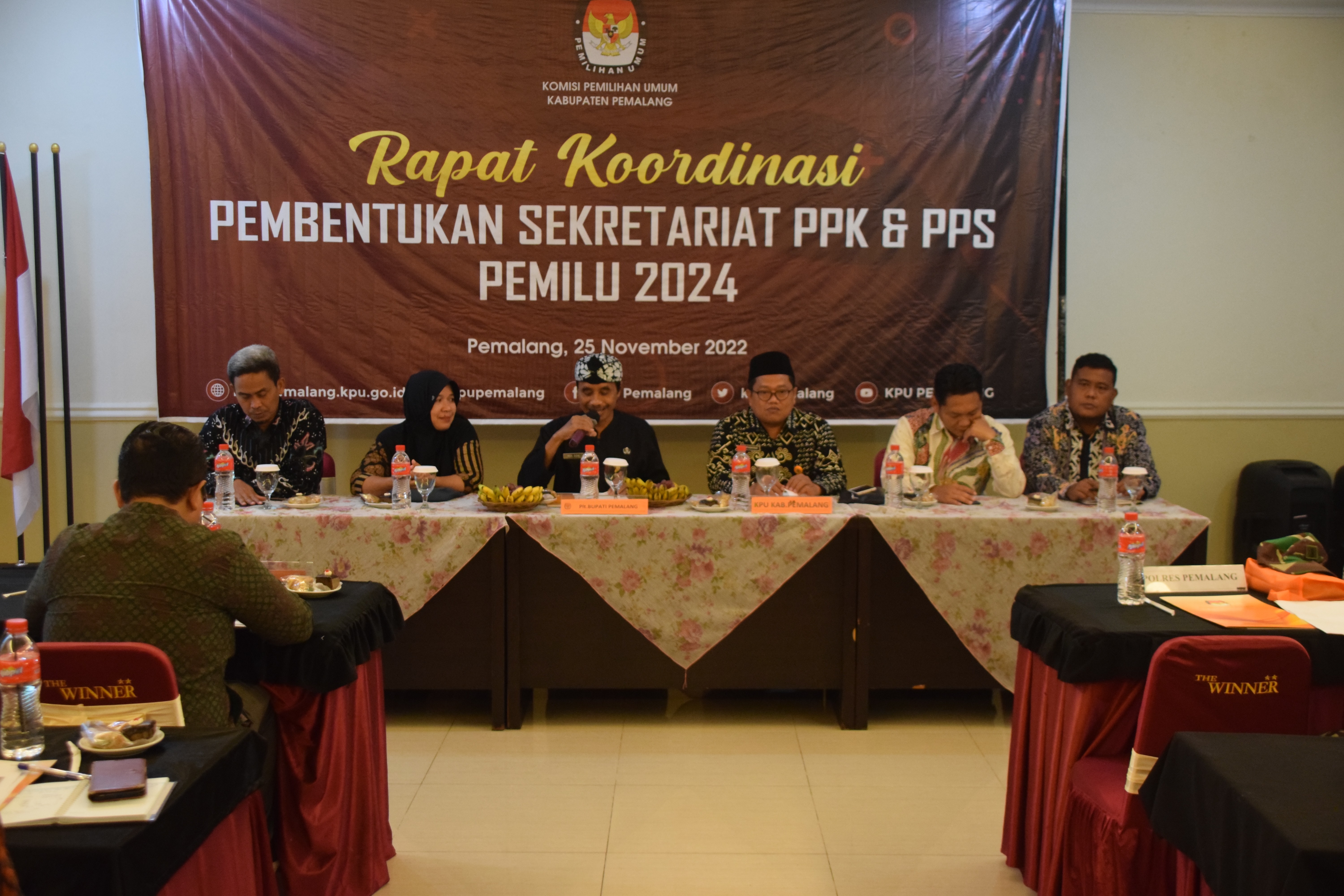 Jum’at 25 November 2022 pukul 09.00 WIB, KPU Kabupaten Pemalang melaksanakan Rapat Koordinasi Pembentukan Sekretariat PPK & PPS Pemilu 2024. Bertempat di The Winner Hotel Pemalang, dihadiri oleh Forkopimda dan Camat se Kabupaten Pemalang.
