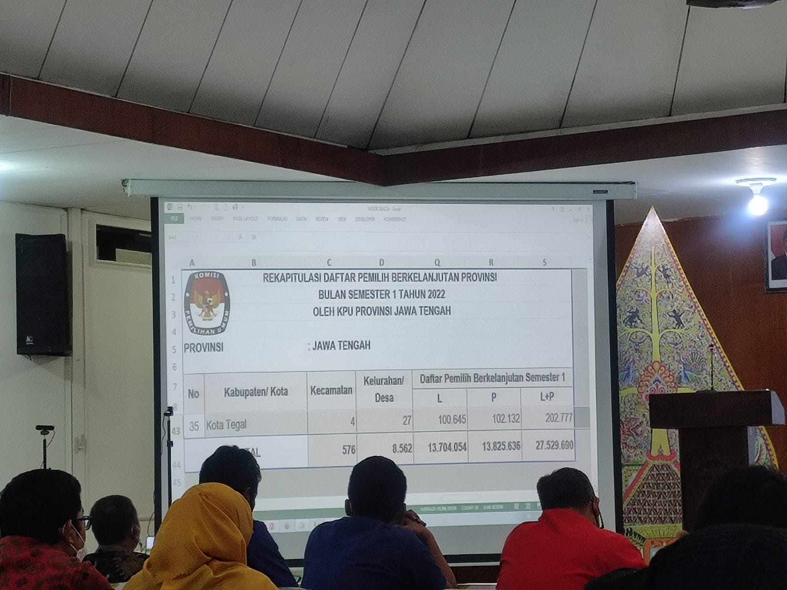 Rakor dibuka oleh Ketua KPU Provinsi Jawa Tengah Paulus Widyantoro dan dipandu oleh Anggota KPU Provinsi Jawa Tengah Divisi Data dan Informasi Henry Wahyono. Dalam rakor ditetapkan jumlah DPB Semester 1 Tahun 2022 sebanyak 27.529.690 pemilih dengan rincian jumlah pemilih laki-laki 13.704.054 pemilih dan jumlah pemilih perempuan 13.825.636 pemilih yang tersebar di 35 Kabupaten/Kota.