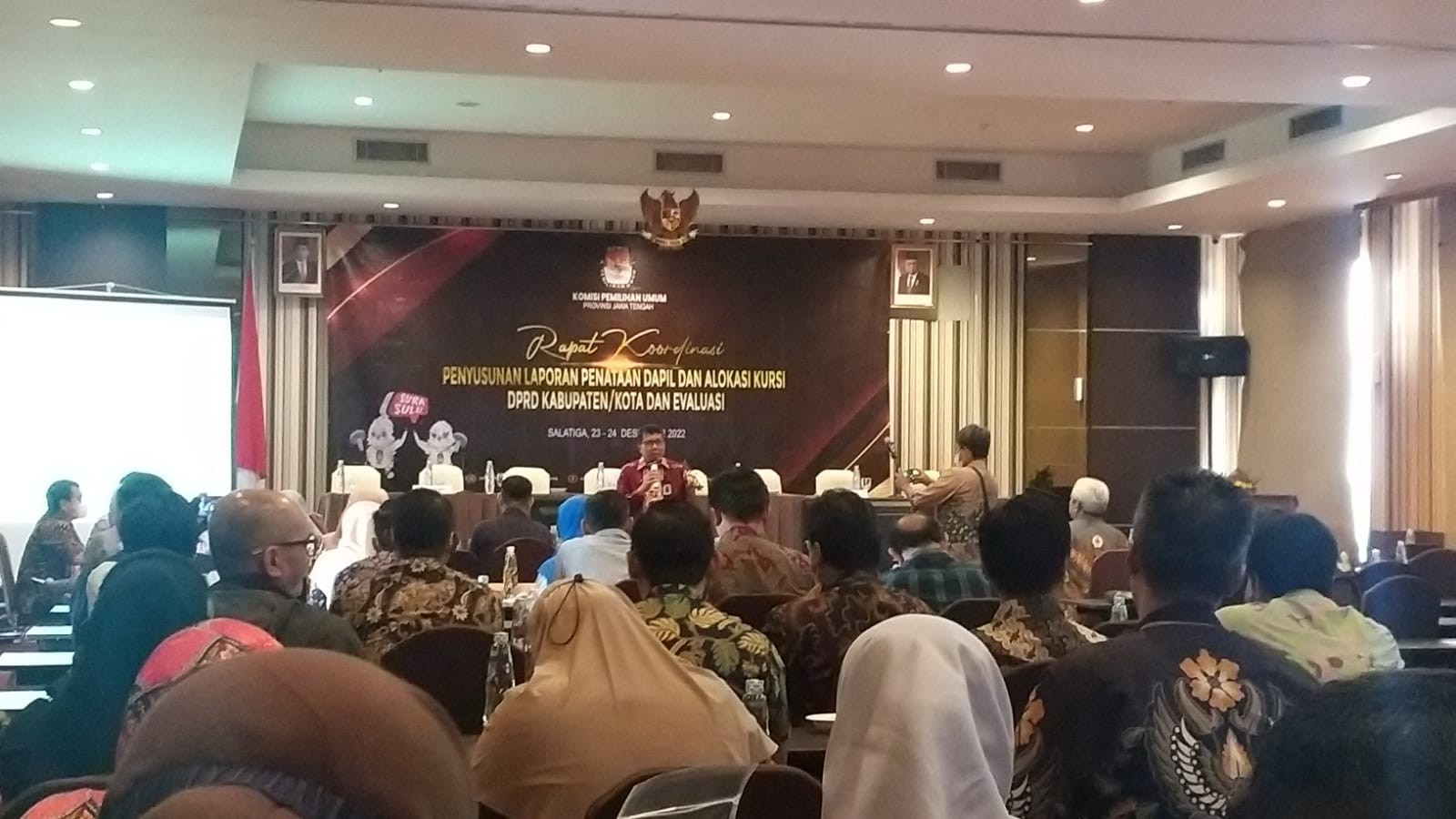 Jum'at 23 - 24 Desember 2022 bertempat di Hotel Laras Ati Salatiga Ketua KPU Kabupaten Pemalang (Mustaghfirin) dan Anggota Divisi Teknis Penyelenggaraan (Harun Gunawan) KPU Kabupaten Pemalang peserta Kasubag Teknis dan Hupmas juga Operator mengikuti kegiatan "Rapat Koordinasi Penyusunan Laporan Penataan Dapil dan Alokasi Kursi DPRD Kabupaten/Kota dan Evaluasi". Acara ini diselenggarakan oleh KPU Provinsi Jawa Tengah dan di ikuti 35 KPU Kabupaten/Kota se Jawa Tengah. Acara di buka oleh Ketua KPU Provinsi Jawa Tengah (Paulus Widiantoro) sekaligus memberikan sambutan dan di lanjutkan pembacaan hasil laporan Penataan Dapil di masing-masing KPU Kabupaten/Kota se Jawa Tengah.
