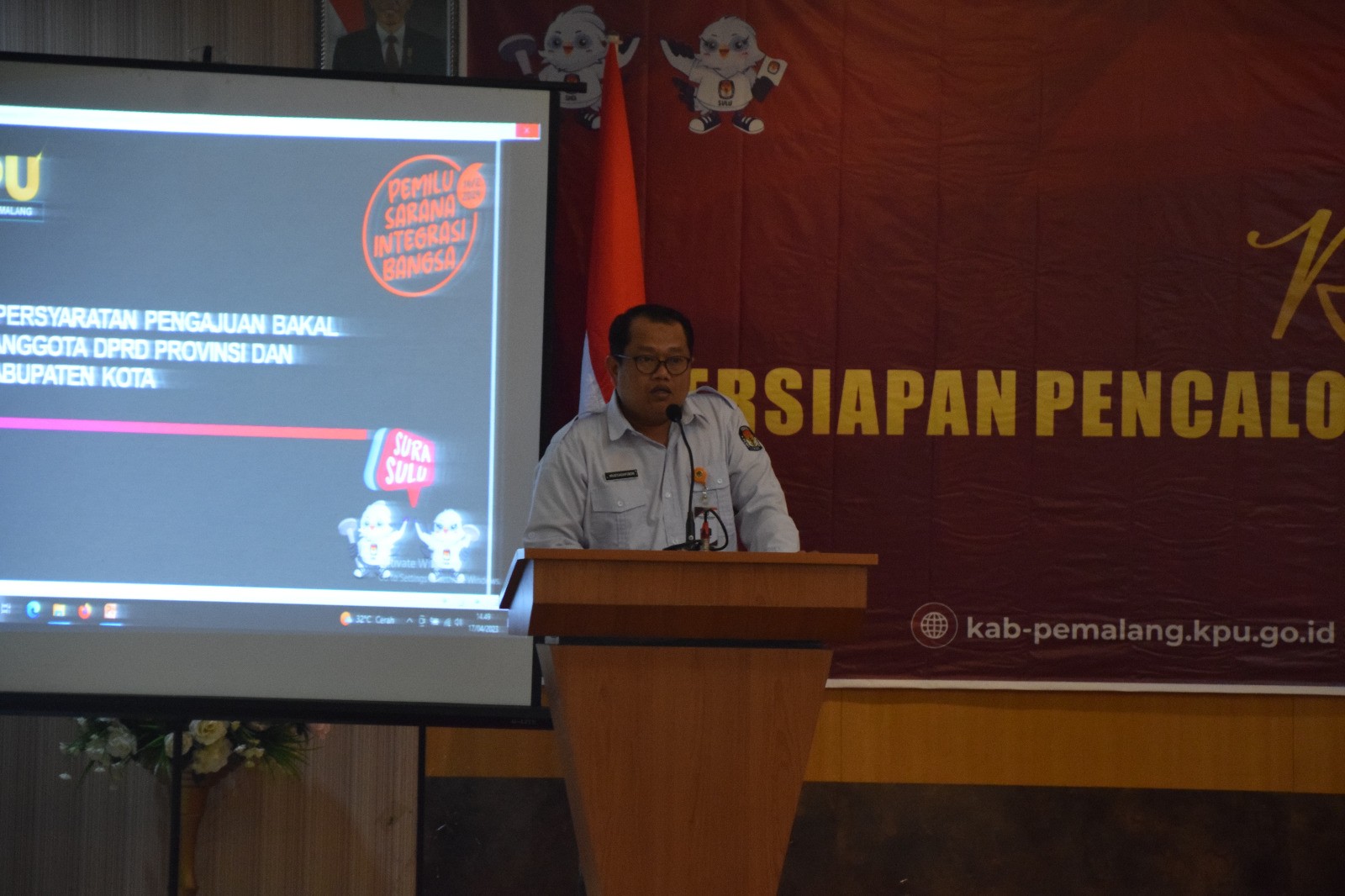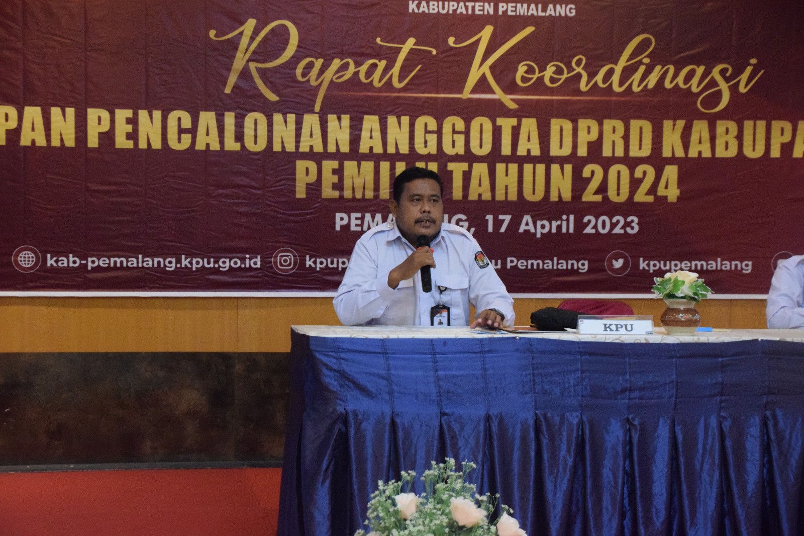 Pemalang, Senin (17/04/2023) KPU Kabupaten Pemalang melaksanakan Rapat Koordinasi Persiapan pencalonan Anggota DPRD Kabupaten Pemalang pada Pemilu Tahun 2024 di Hotel Regina Pemalang.