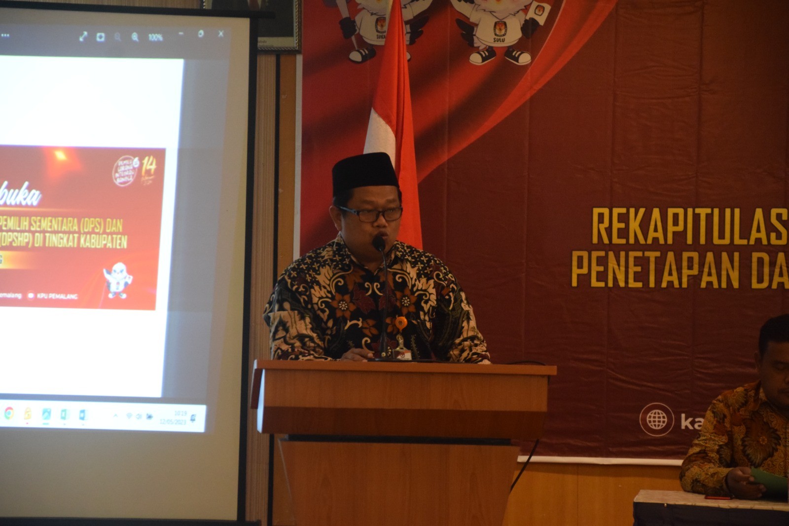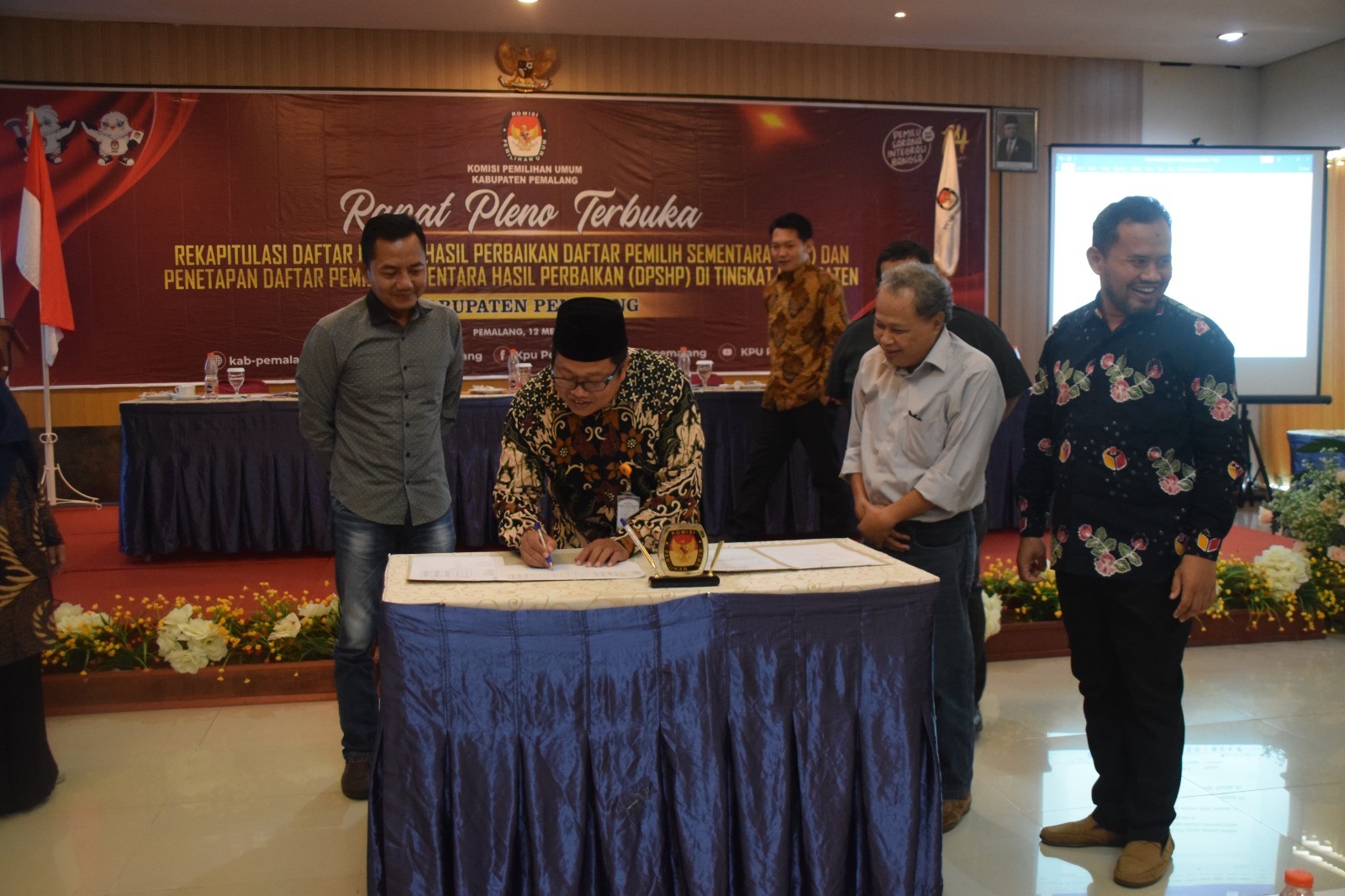 KPU Kabupaten Pemalang melaksanakan Rapat Pleno Terbuka Rekapitulasi Hasil Perbaikan Daftar Pemilih Sementara (DPS) dan Penetapan Daftar Pemilih Sementara Hasil Perbaikan (DPSHP) Tingkat Kabupaten/Kota pada Pemilu Tahun 2024 di Hotel Regina Pemalang, Jumat (12/05/2023). Hadir pada kegiatan tersebut Forkopimda, Dinas/Instansi, Bawaslu, Partai Politik, serta PPK se-Kabupaten Pemalang.