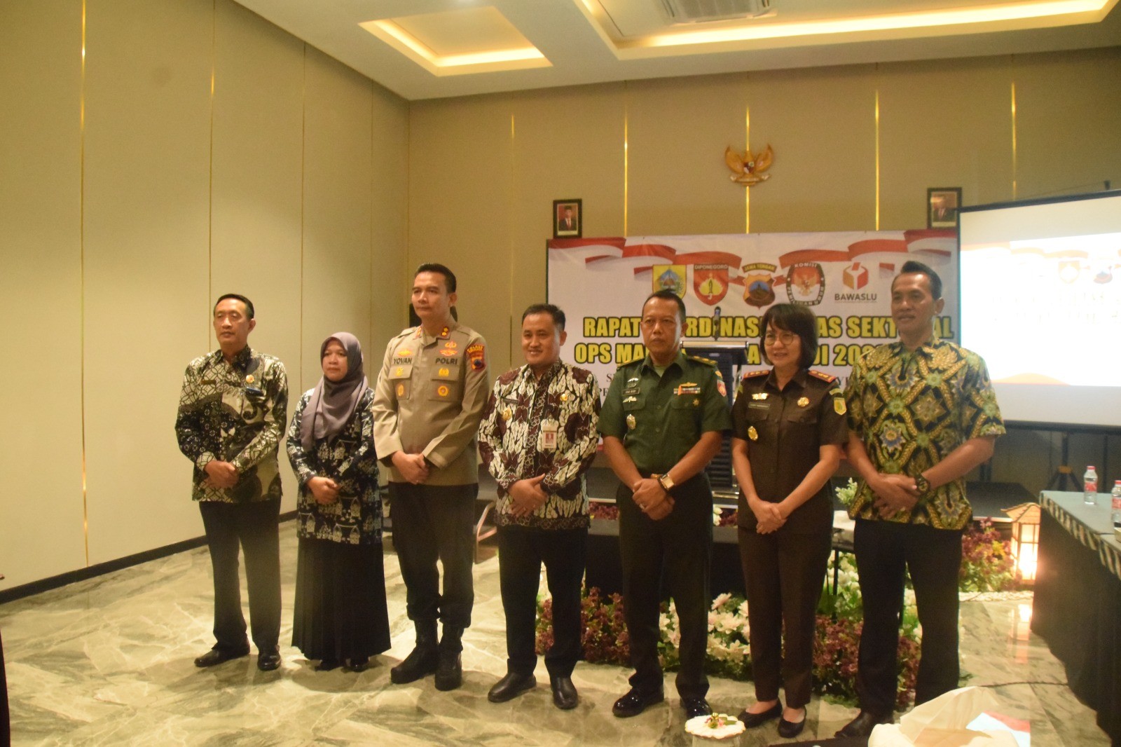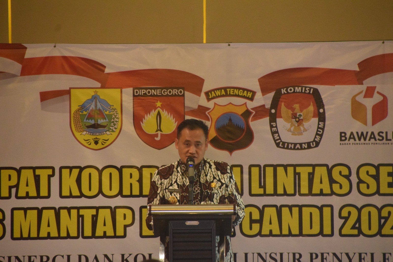 KPU Kabupaten Pemalang yang diwakili Plt. Ketua Aida Yunirahmawati menghadiri undangan Rapat Koordinasi Lintas Sektoral Ops Mantap Brata Candi 2023-2024 yang diselenggarakan oleh Polres Pemalang, Kamis (12/10/2023) pukul 09.00 bertempat di Grand Wijaya Hotel Pemalang. Hadir pada rakor tersebut yakni Bupati Pemlang, Forkopimda Kabupaten Pemalang, Camat, Kapolsek, Danramil, PPK, serta Panwascam se-Kabupaten Pemalang. Acara dibuka oleh Kapolres Pemalang AKBP. Yovan Fatika, dilanjutkan Sambutan Bupati Pemalang Mansur Hidayat. Acara selanjutnya penyampaian materi oleh narasumber yakni dari Polres Pemalang, KPU Kabupaten Pemalang serta Bawaslu Kabupaten Pemalang.