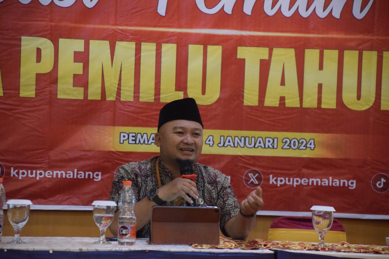 KPU Kabupaten Pemalang menggelar sosialisasi pemilih pemula pada Pemilu Tahun 2024 di Hotel Regina Pemalang, Kamis (04/01/2024) pukul 10.00 WIB. Hadir pada kegiatan tersebut Disdukcapil kabupaten Pemalang, Bawaslu Kabupaten Pemalang, Cabang Dinas Pendidikan Wilayah XII Jawa Tengah, serta Waka Kesiswaan SMA/SMK/MA se-Kabupaten Pemalang.