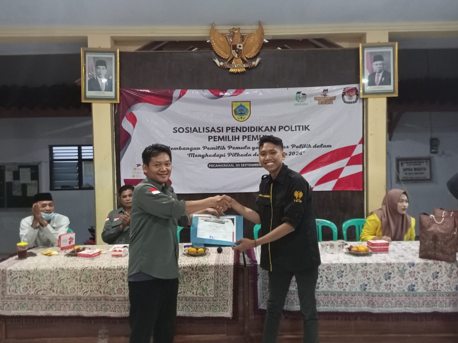 Jum'at, 9 September 2022 pukul 20.0 WIB, Anggota KPU Kabupaten Pemalang Divisi Sosdiklih Parmas dan SDM Agus Setiyanto menghadiri undangan sebagai narasumber pada Sosialisasi Pemilu 2024 dengan tema “Membangun Pemilih Pemula Yang Cerdas Politik Dalam Menghadapi Pemilu dan Pilkada" yang diselenggarakan oleh Mahasiswa Kuliah kerja Nyata (KKN) UNNES GIAT Angkatan 2 Universitas Negeri Semarang. Bertempat di Balai Desa Pecangakan Kecamatan Comal, dengan peserta Ikatan Pelajar Nahdlatul Ulama di Desa Pecangakan.