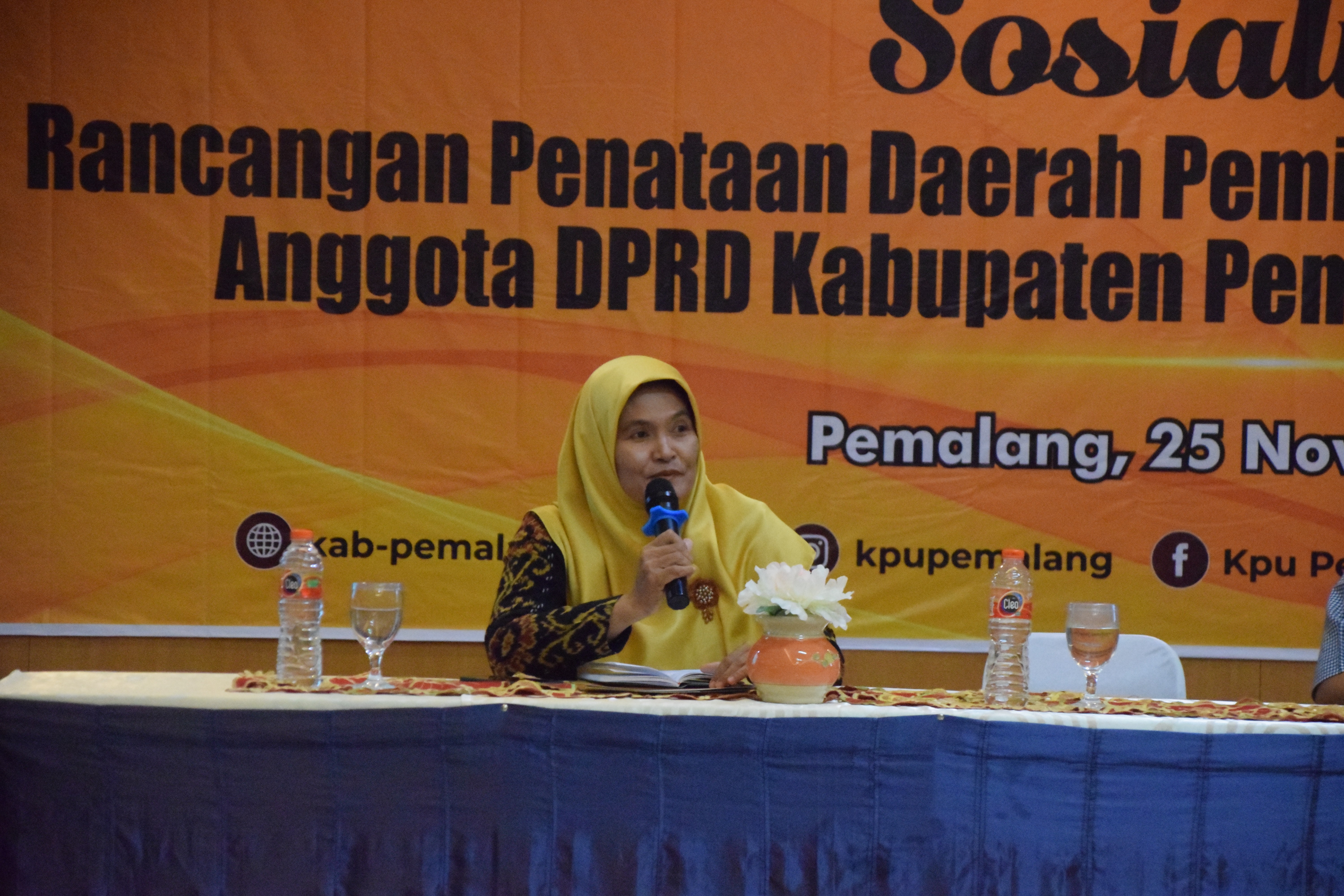 Acara dibuka oleh Ketua KPU Kab. Pemlang Mustaghfirin, dilanjutkan sambutan Plt. Bupati Pemalang Mansur Hidayat. Selanjutnya sesi diskusi yang dimoderatori oleh Maesaroh (Sekretaris PD ‘Aisyiyah Kab. Pemalang) dengan narasumber Harun Gunawan (Anggota KPU divisi Teknis Penyelenggaraan) dan Achmad Irwan Hamzani (Dekan Fakultas Hukum Universitas Pancasakti Tegal).