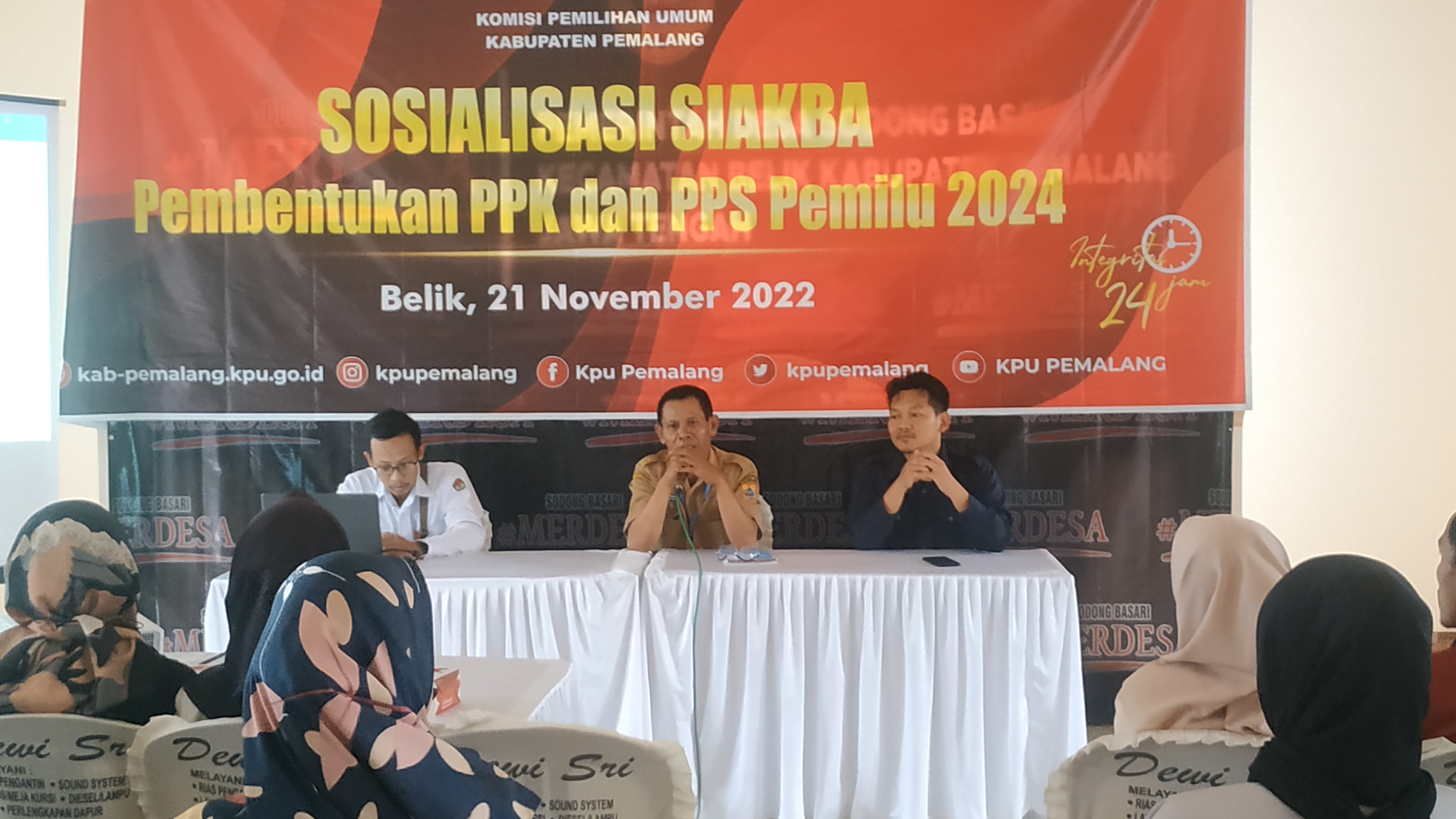 Senin 11 November 2022 pukul 14.00 WIB, KPU Kabupaten Pemalang melaksanakan sosialisasi Siakba untuk calon pendaftar PPK dan PPS di Kecamatan Belik. Bertempat di Balai Desa Sodong Basari Kecamatan Belik dengan peserta calon pendaftar PPK dan PPS di Kecamatan Belik. Peserta diberikan pengarahan oleh Agus Setiyanto (Anggota KPU divisi Sosdiklih Parmas dan SDM) terkait alur pendaftaran PPK dan PPS melalui aplikasi Siakba.