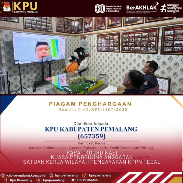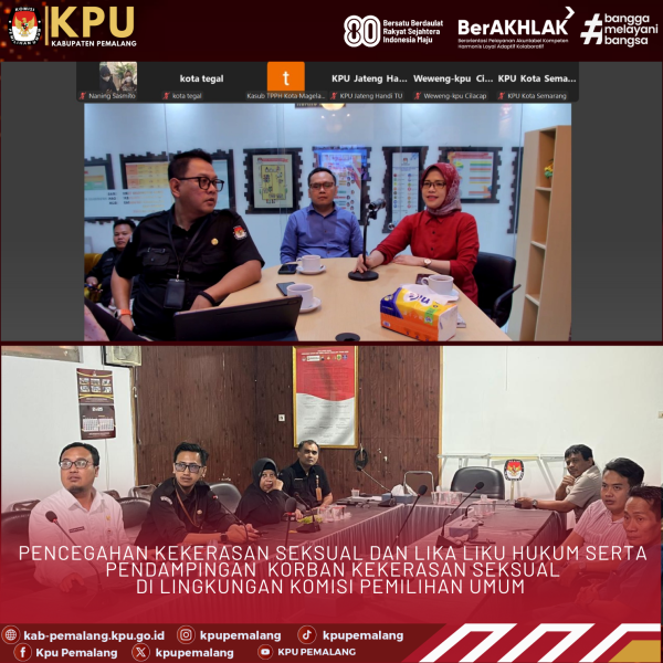 #temanpemilih, Ketua Divisi Hukum dan Pengawasan KPU Kabupaten Pemalang, Akhmad Nurmuladi beserta jajaran sekretariat mengikuti kegiatan Rapat Koordinasi Pengelolaan Website dan Media Sosial Jaringan Dokumentasi dan Informasi Hukum (JDIH) yang dilaksanakan oleh KPU Provinsi Jawa Tengah secara daring di ruang Rapat KPU Kabupaten Pemalang, Senin (11/8/2025).