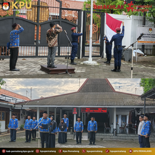 Pemalang, 2 Juni 2025 — Komisi Pemilihan Umum (KPU) Kabupaten Pemalang menggelar upacara peringatan Hari Lahir Pancasila pada Senin, 2 Juni 2025. Upacara dilaksanakan di halaman kantor KPU Kabupaten Pemalang dan diikuti oleh seluruh jajaran komisioner, sekretariat, serta staf KPU.