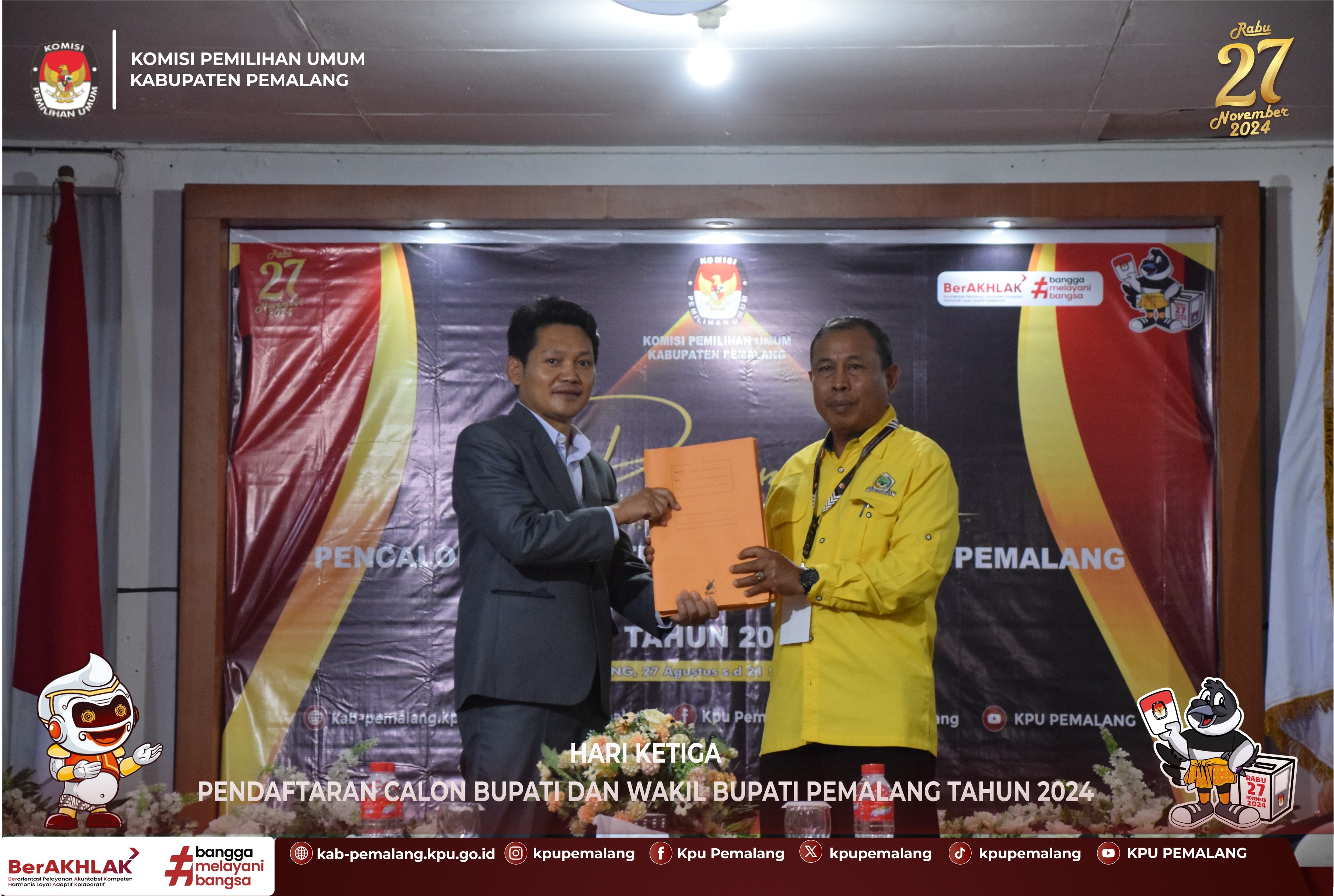 #TemanPemilih, Jum'at (30/8/2024) tiga Bakal Pasangan Calon Bupati dan Wakil Bupati Pemalang yaitu Mansur Hidayat, S.T., M.Ling. bersama Muhammad Bobby Dewantara, S.H,