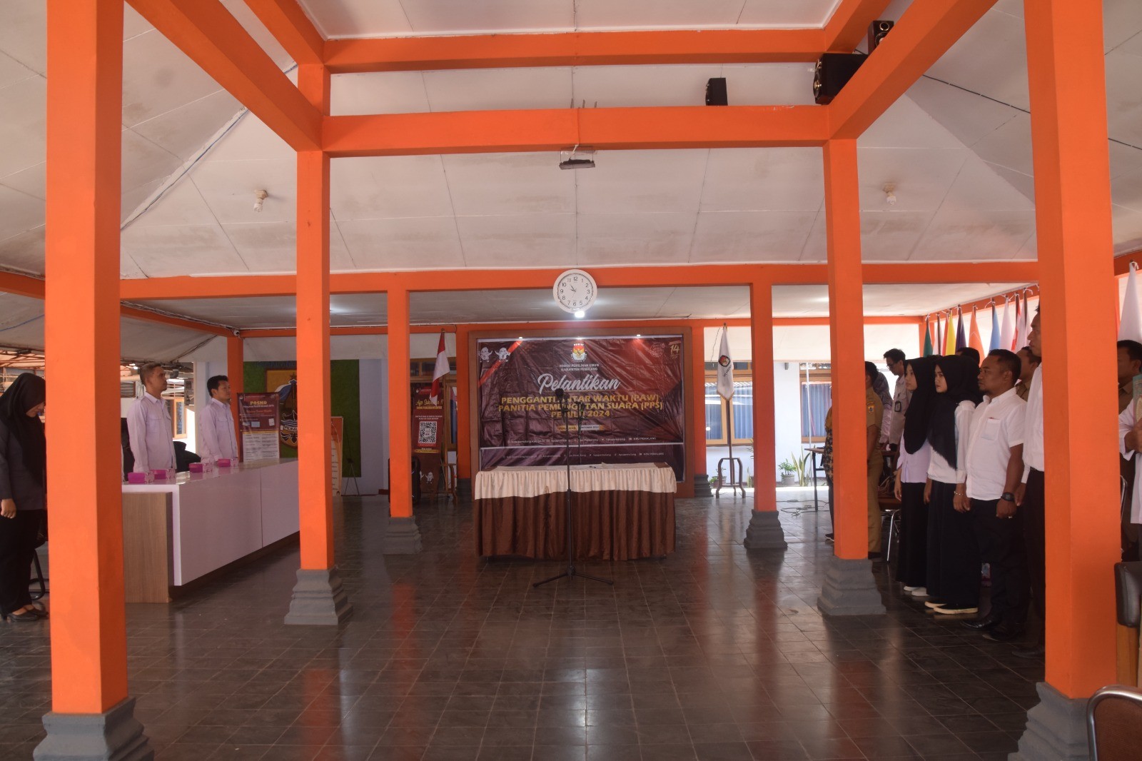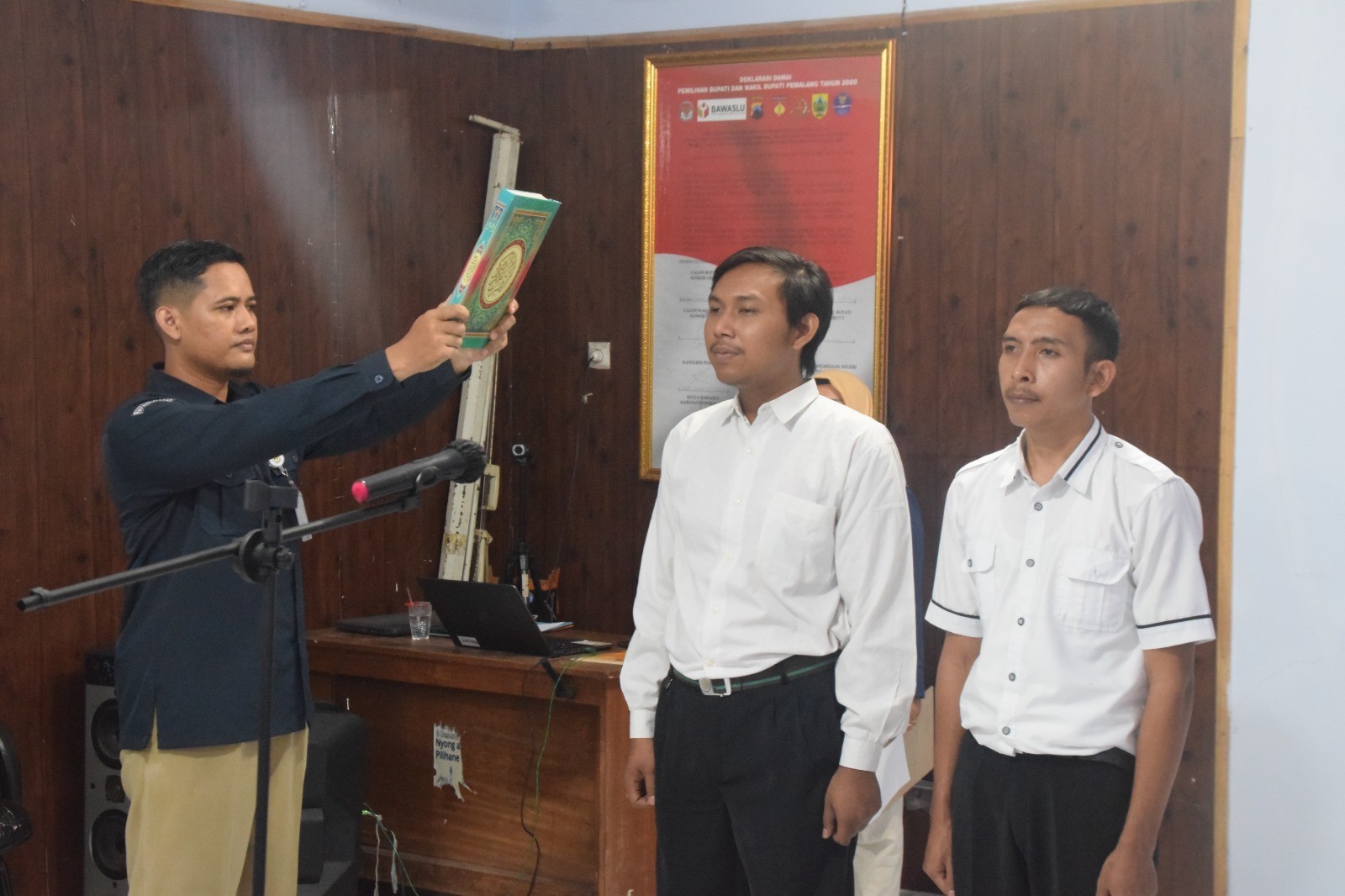 KPU Kabupaten Pemalang melantik pengganti antar waktu (PAW) Panitia Pemungutan Suara (PPS) Desa Glandang Kecamatan Bantarbolang, Panitia Pemungutan Suara (PPS) Desa Penggarit, Panitia Pemungutan Suara (PPS) Desa Kejambon Kecamatan Taman dan Panitia Pemungutan Suara (PPS) Desa Pulosari Kecamatan Pulosari bertempat di Aula KPU Kabupaten Pemalang, Senin (09/10/2023) pukul 09.00 WIB. Hadir pada kegiatan tersebut Bawaslu Kabupaten Pemalang, PPK Kecamatan Taman, PPS Desa Penggarit , PPS Desa Kejambon, PPK Kecamatan Pulosari, PPS Desa Pulosari, dan PPK Kecamatan Bantarbolang, PPS Desa Glandang. Pengambilan sumpah dilakukan oleh Anggota KPU Kabupaten Pemalang Agus Setiyanto.
