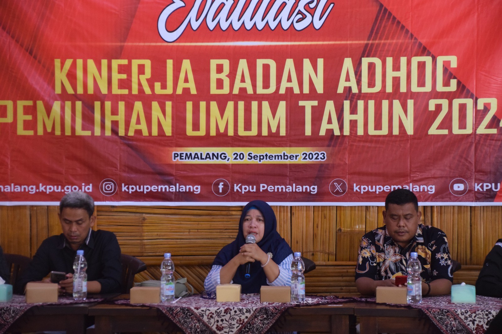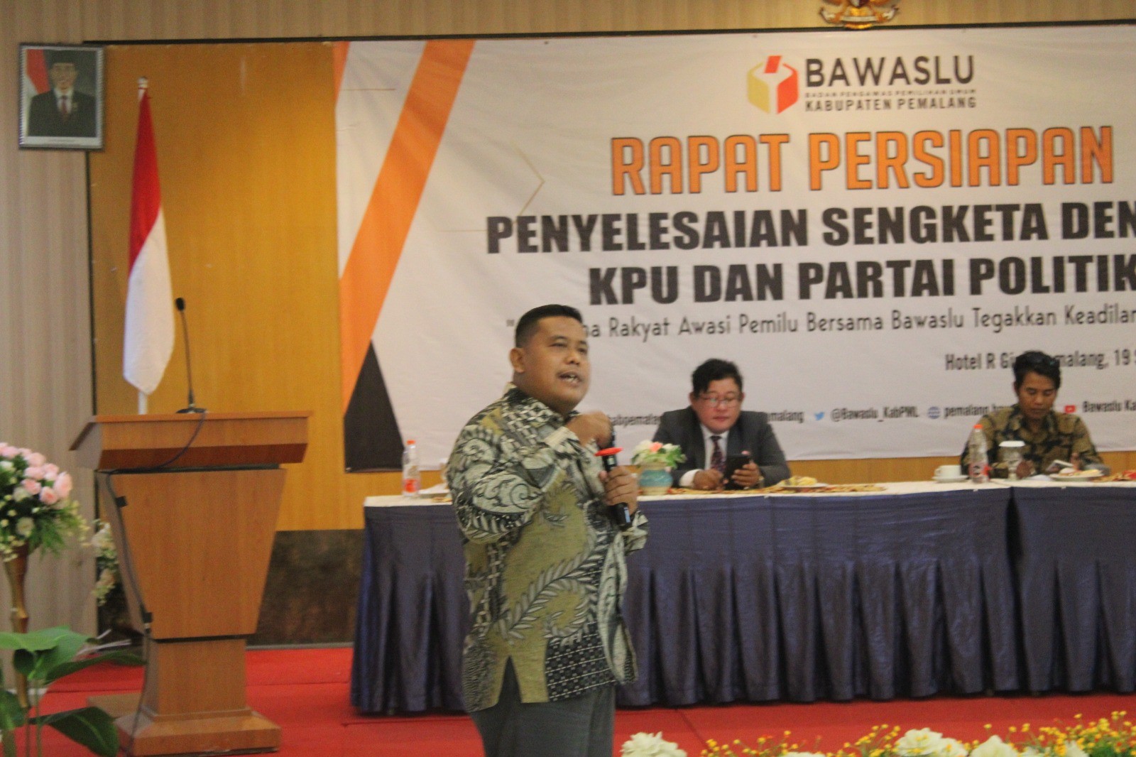 Anggota KPU Kabupaten Pemalang Wahyono menjadi narasumber pada acara Rapat Persiapan Penyelesaian Sengketa dengan KPU dan Partai Politik, yang di selenggarakan Bawaslu Kabupaten Pemalang, Selasa(19/09/2023) pukul 09.45 WIB di R-gina hotel Pemalang, adapun materi yang di sampaikan tentang Tahapan Pemilu dan permasalahan sengketa. Selain KPU diundang pula untuk menjadi narasumber yakni Awaludin sebagai Anggota Bawaslu periode 2018-2023 dan Prof. Dr. Purwo Susongko M.Pd sebagai akademisi UPS Tegal. Hadir dalam acara tersebut perwakilan dari Partai Politik, Bakesbangpol, Satpol PP, Kodim, Polres dan Kejaksaan Negeri di Kabupaten Pemalang.