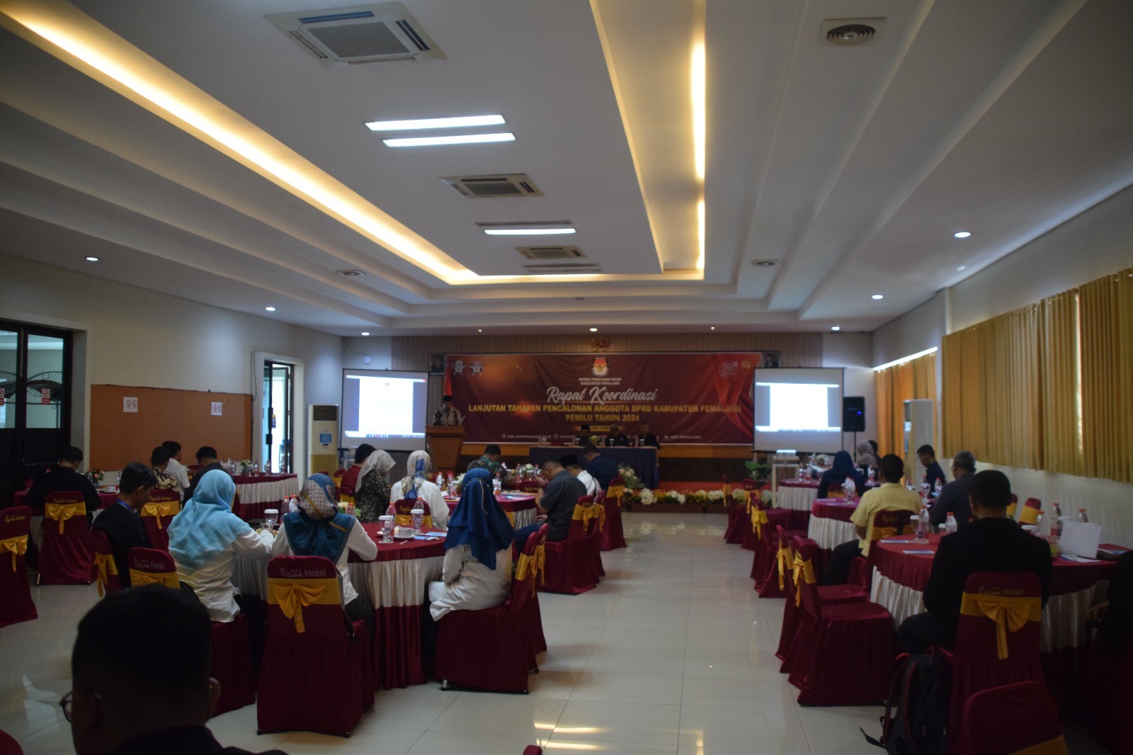 Rapat dibuka oleh Ketua KPU Kab. Pemalang Mustaghfirin, dilanjutkan sambutan Plt. Bupati Pemalang Mansur Hidayat yang diwakili oleh Kabid Politik Dalam Negeri dan Ormas Bakesbangpol Kab. Pemalang Ario Ardhie Hagono. Rapat dilanjutkan dengan penyampaian Rekapitulasi Hasil Perbaikan Daftar Pemilih Sementara (DPS) tingkat Kabupaten oleh Anggota KPU Aida Yunirahmawati dengan jumlah pemilih sebanyak 1.143.559 dan ditetapkan menjadi Daftar Pemilih Sementara Hasil Perbaikan (DPSHP) oleh Ketua KPU Mustaghfirin.