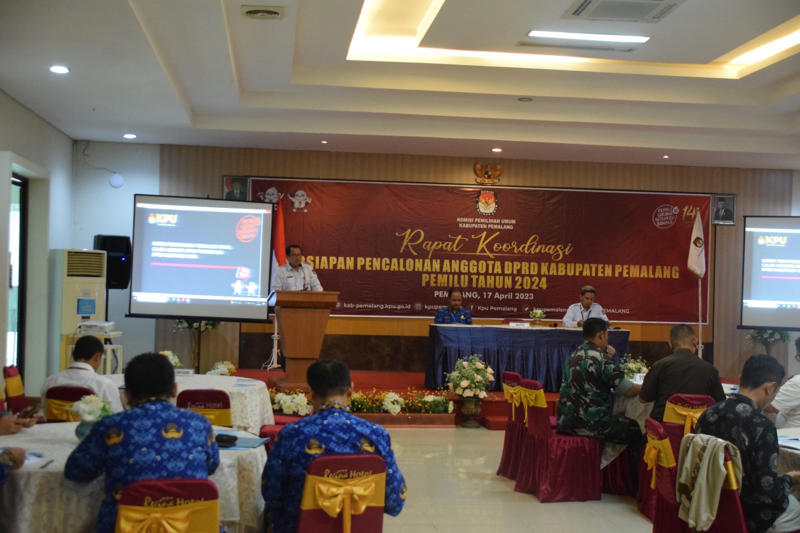 #TemanPemilih, Pemalang, Anggota KPU Kabupaten Pemalang Divisi Sosialisasi Pendidikan Pemilih Partisipasi Masyarakat dan SDM (Agus Setiyanto) mengikuti Rapat Kerja Divisi Sosialisasi, Pendidikan Pemilih dan Partisipasi Masyarakat yang digelar oleh KPU Provinsi Jawa Tengah tanggal 17 Maret 2023 bertempat di KPU Kota Surakarta. Hadir dalam kegiatan tersebut Anggota KPU Diivisi Sosialisasi, Pendidikan Pemilih, Partisipasi Masyarakat dan SDM serta Sekretaris KPU Kabupaten/kota di 20 KPU Kabupaten/Kota Jawa tengah.