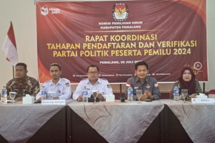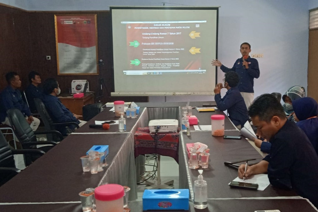 KPU Kabupaten Pemalang, Kamis 28 Juli 2022 bertempat diruang rapat, Bpk Wahyono, S.Pd Anggota KPU Divisi Hukum dan Pengawasan beserta Ibu Anita Kurniawati, SE Kasubag Hukum dan SDM mengikuti Rapat Seri Advokasi Hukum Kepemiluan II secara Online (dalam Jaringan) : Masalah - Masalah Hukum dalam Tahapan Pendaftaran dan Verifikasi Peserta Pemilu, acara ini diselenggarakan oleh KPU Provinsi Jawa Tengah dan diikuti oleh seluruh KPU Kab/Kota di seluruh Jawa Tengah.