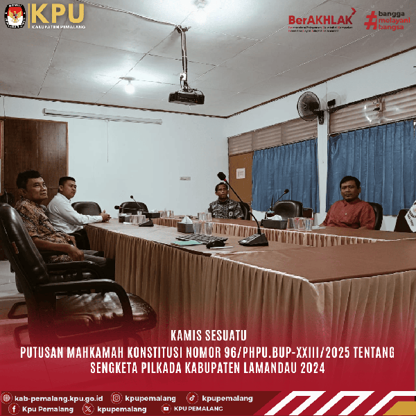 PEMALANG- Komisi Pemilihan Umum (KPU) Kabupaten Pemalang melaksanakan rapat dalam rangka alih media arsip dan pengelolaan arsip di lingkungan KPU kabupaten Pemalang pada hari Selasa, 28 Oktober 2025. Rapat ini dihadiri oleh Komisioner KPU, Sekretaris KPU, Kepala Subbagian Keuangan, Umum, dan Logistik (KUL), serta perwakilan staf dari setiap subbagian di lingkungan KPU Kabupaten Pemalang.