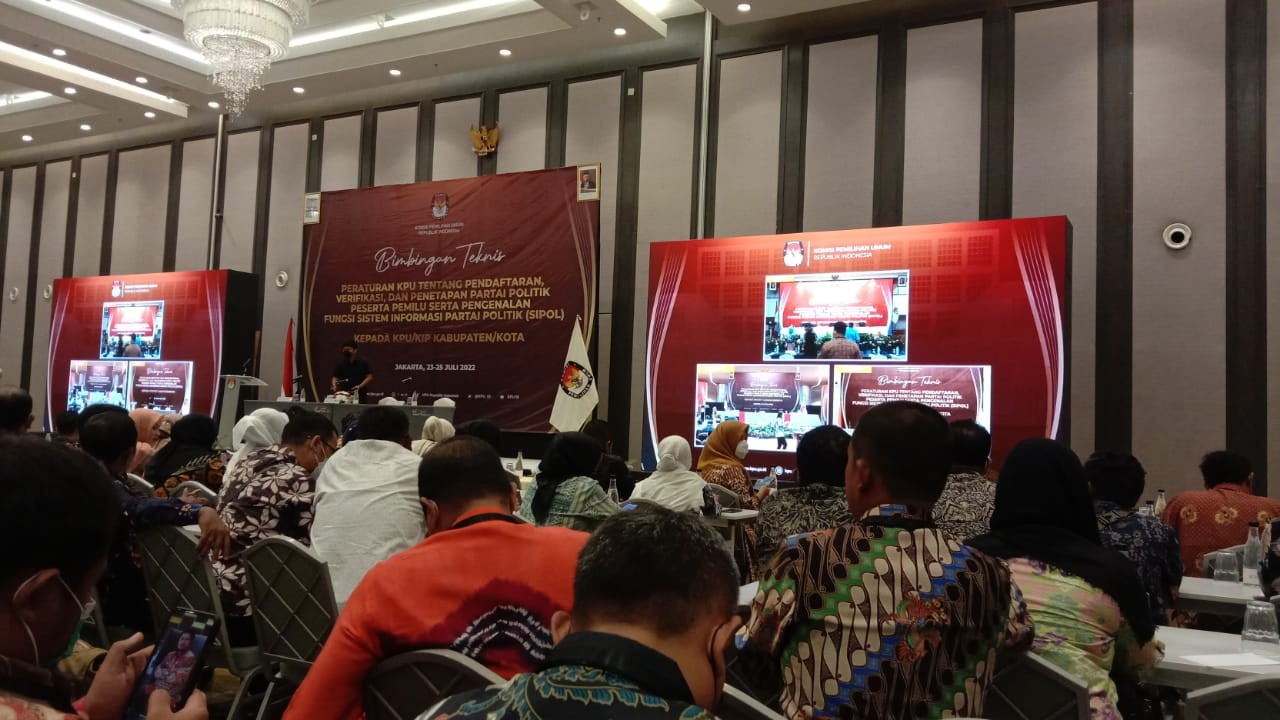 Dalam rangka menyamakan persepsi dan pemahaman regulasi dan kebijakan tentang pendaftaran, verifikasi, dan penetapan partai politik peserta Pemilu Tahun 2024 serta pengenalan fungsi Sistem Informasi Partai Politik (Sipol), KPU Republik Indonesia mengadakan kegiatan Bimbingan Teknis dengan peserta dari KPU/KIP Provinsi dan KPU/KIP Kabupaten/Kota di seluruh Indonesia.