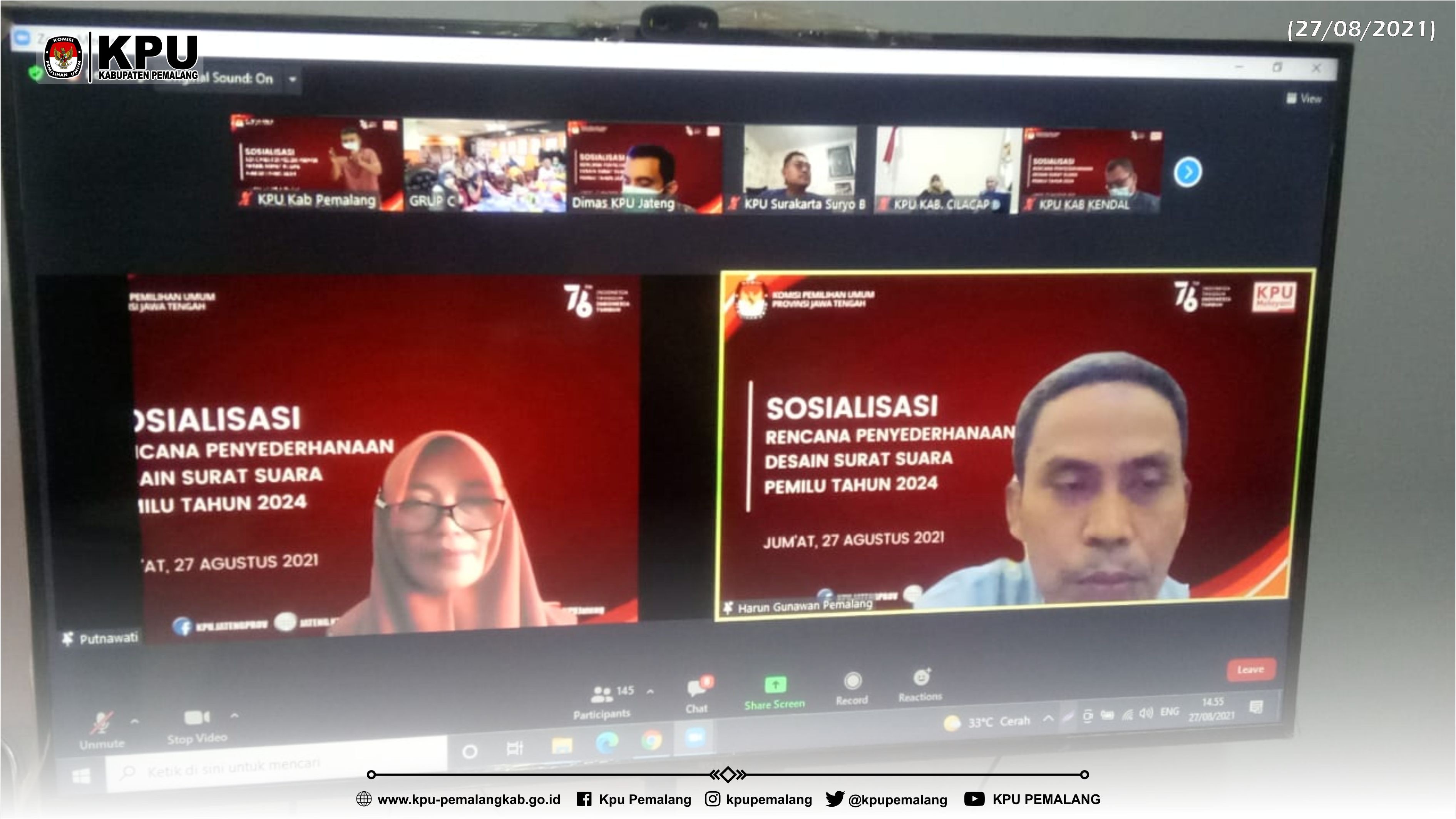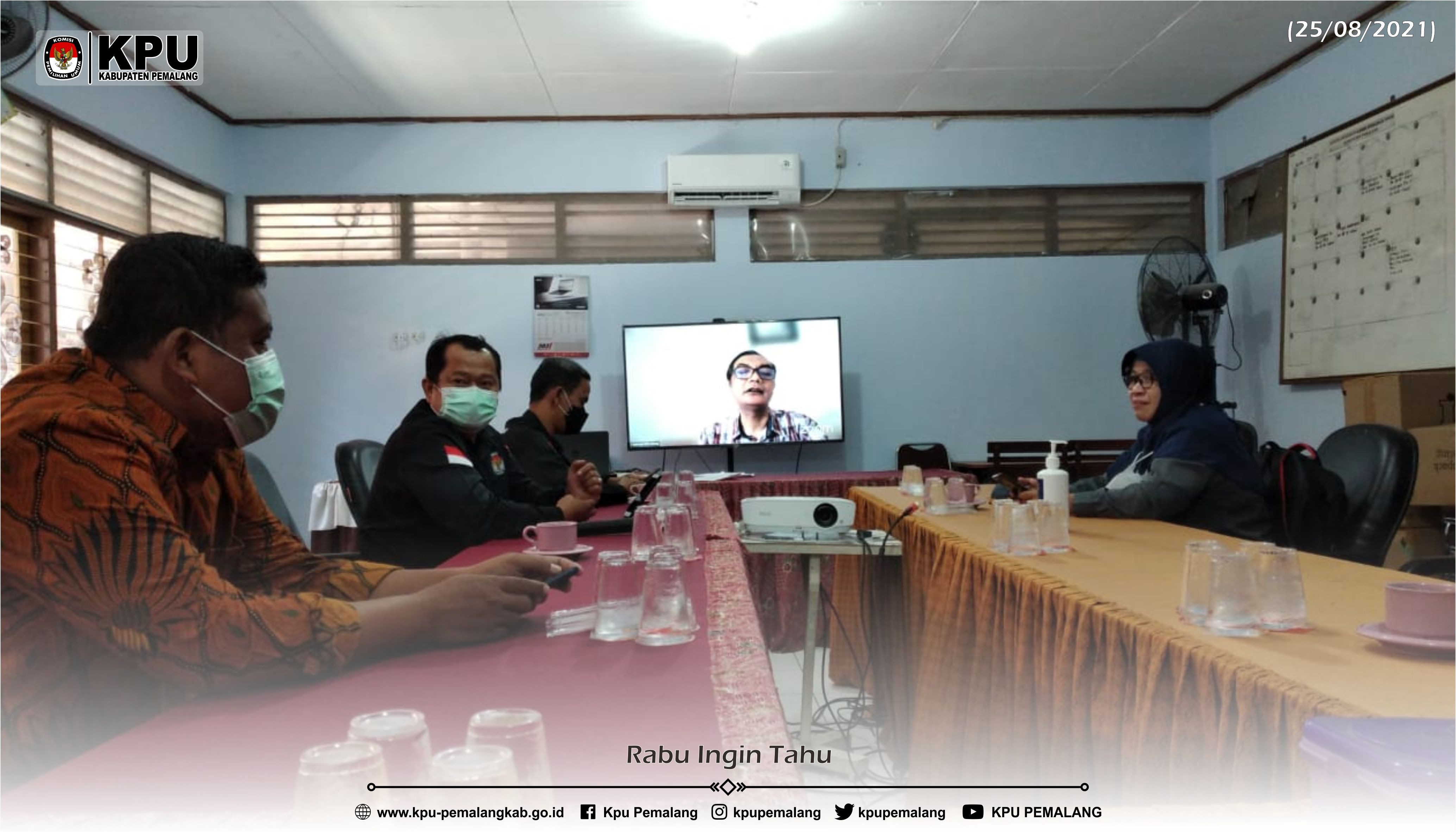 Rabu 25 Agustus 202, KPU Kabupaten Pemalang  beserta 6  KPU di Provinsi Jawa Tengah lainnya yaitu Kabupaten Kebumen, Kota Surakarta, Kota salatiga, Kabupaten Kendal, Kabupaten Brebes, Kabupaten Kudus telah melaksanakan Kajian Internal Draft Peraturan Komisi Pemilihan Umum dengan materi Penelitian Administrasi Kepengurusan, Keanggotaan dan Kantor Partai Politik Peserta Pemilu.