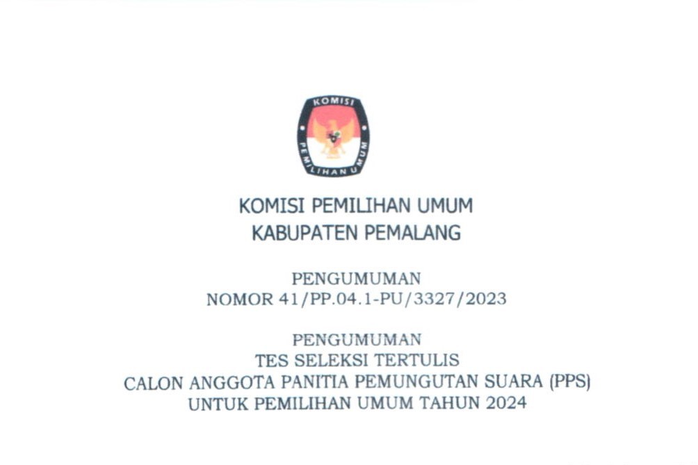 Pengumuman Hasil Seleksi Tertulis dan Jadwal Seleksi Wawancara Calon Anggota Panitia Pemungutan Suara Pemilu Tahun 2024 Kamis, 12 Januari 2023 17:00 1041 Untuk pengumuman lengkap Klik disini Baca Selengkapnya