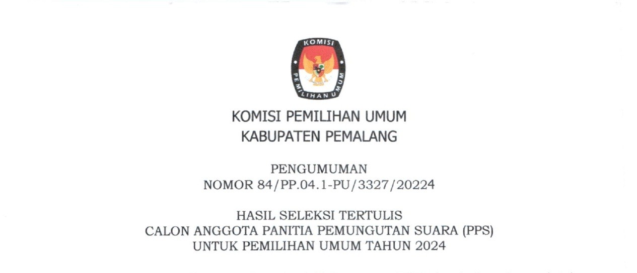 Pengumuman Hasil Seleksi Panitia Pemungutan Suara (PPS) untuk Pemilihan Umum Tahun 2024 Rabu, 18 Januari 2023 20:00 1279 Untuk pengumuman lengkap Klik disini Baca Selengkapnya