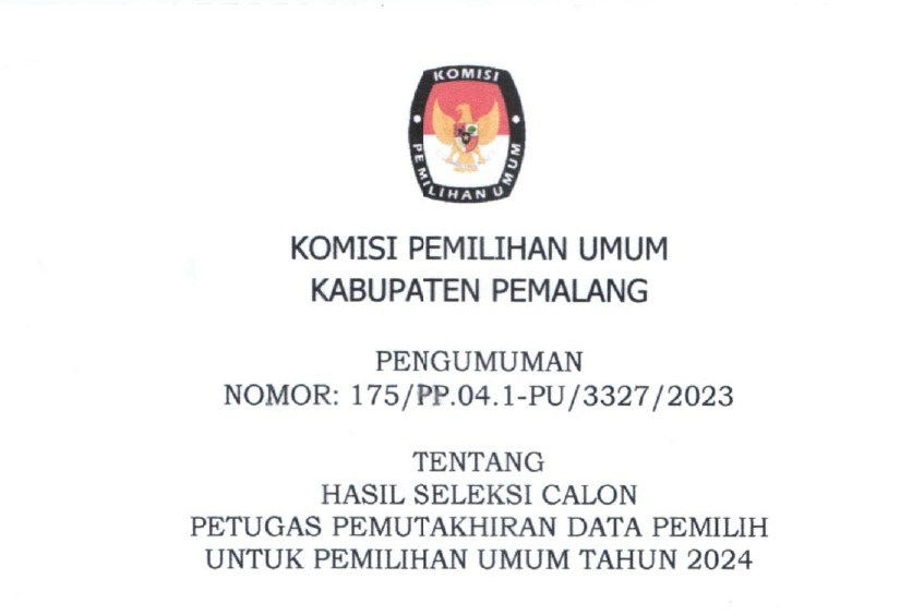 Pengumuman Hasil Seleksi Calon Petugas Pemutakhiran Data Pemilih Untuk Pemilihan Umum Tahun 2024 Jumat, 03 Februari 2023 19:00 627 Untuk pengumuman lengkap Klik disini Baca Selengkapnya