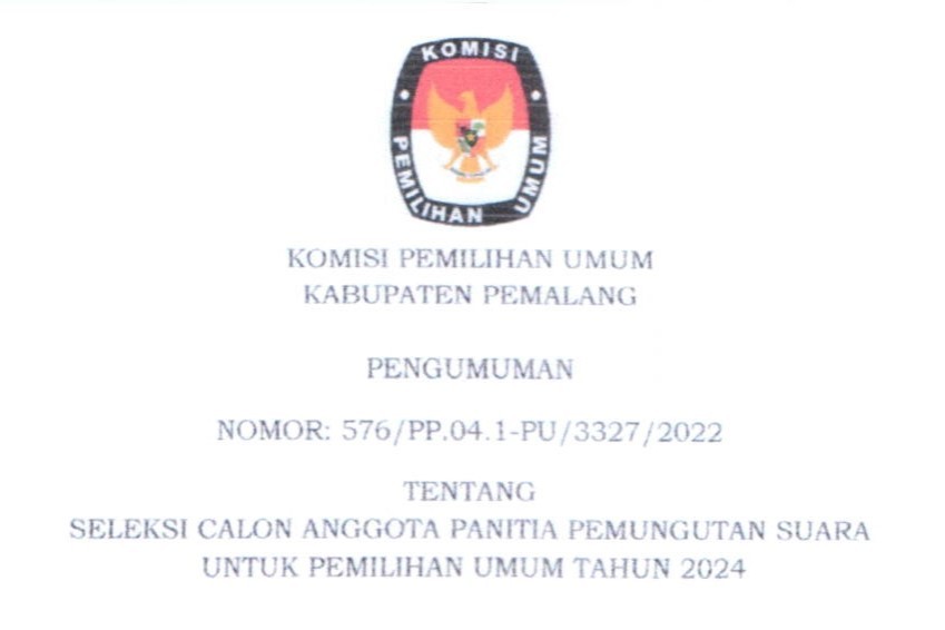 Pengumuman Seleksi Panitia Pemungutan Suara untuk Pemilihan Umum Tahun 2024 Minggu, 18 Desember 2022 04:00 2949 Untuk pengumuman lengkap Baca Selengkapnya