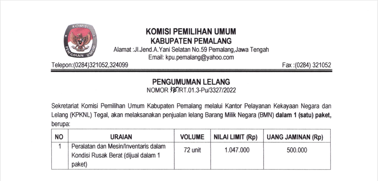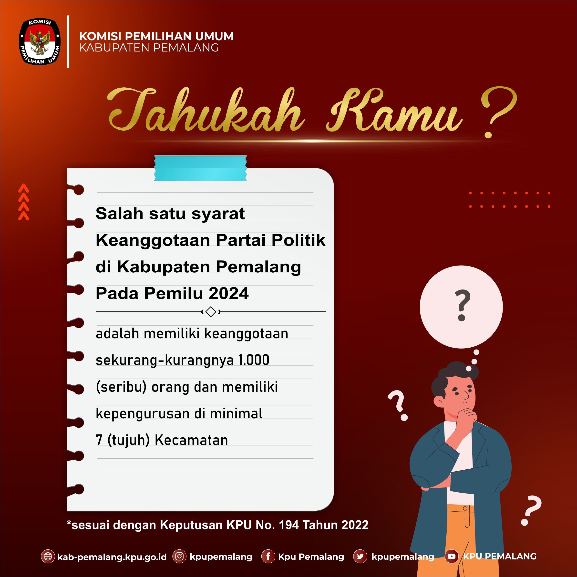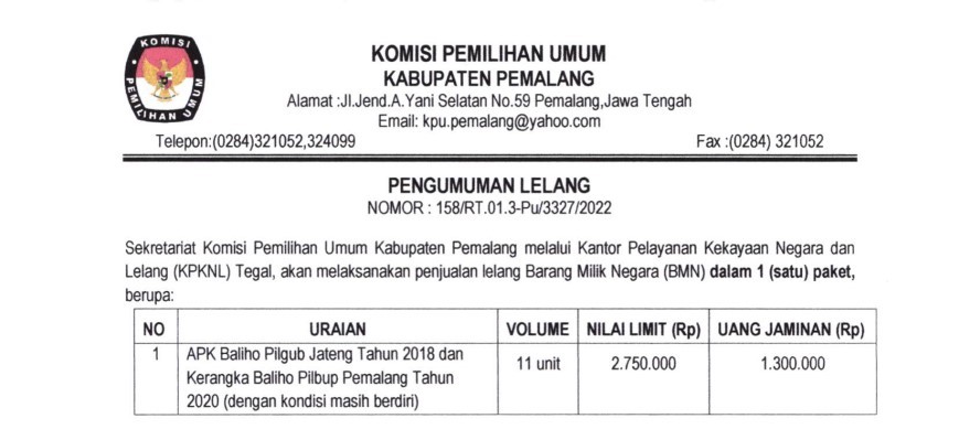 SIARAN PERS Berdasarkan Undang-Undang Nomor 7 Tahun 2017 tentang Pemilihan Umum dan Peraturan Komisi Pemilihan Umum Nomor 6 Tahun 2021 tentang Pemutakhiran Data Pemilih Berkelanjutan, KPU Kabupaten Pemalang melaksanakan Rapat Pleno Rekapitulasi Pemutakhiran Daftar Pemilih Berkelanjutan (PDPB) Bulan Juni 2022, dengan rincian sebagai berikut : Jumlah Pemutakhiran Daftar Pemilih Berkelanjutan Bulan Mei 2022 dengan jumlah 1.108.304 (satu juta seratus delapan ribu tiga ratus empat) pemilih; Jumlah Potensi Pemilih Baru sebanyak 0 (nol) pemilih; Jumlah Pemilih Tidak Memenuhi Syarat (TMS) sebanyak 5.689 (lima ribu enam ratus delapan puluh sembilan) pemilih; Jumlah Pemutakhiran Daftar Pemilih Berkelanjutan Bulan Juni 2022 dengan Jumlah 1.102.615 (satu juta seratus dua ribu enam ratus lima belas) pemilih. Rekapitulasi Data Pemilih per kecamatan selengkapnya sebagaimana terlampir. Demikian Siaran Pers KPU Kabupaten Pemalang terkait dengan Pemutakhiran Daftar Pemilih Berkelanjutan Bulan Juni 202 untuk dapat disiarkan dan disebarluaskan kepada masyarakat umum. Pemalang, 28 Juni 2022 KPU Kabupaten Pemalang, Ketua, Berikut Lampiran Rekapitulasi Data Pemilih per kecamatan Klik disini.