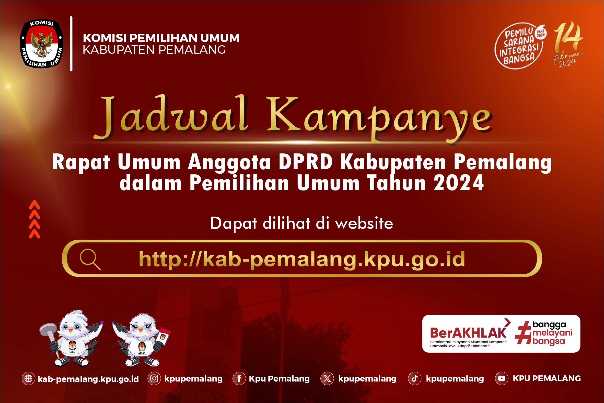 Keputusan Komisi Pemilihan Umum Nomor 35 Tahun 2024 Tentang Penetapan Jadwal Kampanye Rapat Umum Anggota Dewan perwakilan Rakyat Daerah Kabupaten Pemalang dalam Pemilihan Umum Tahun 2024 klik disini
