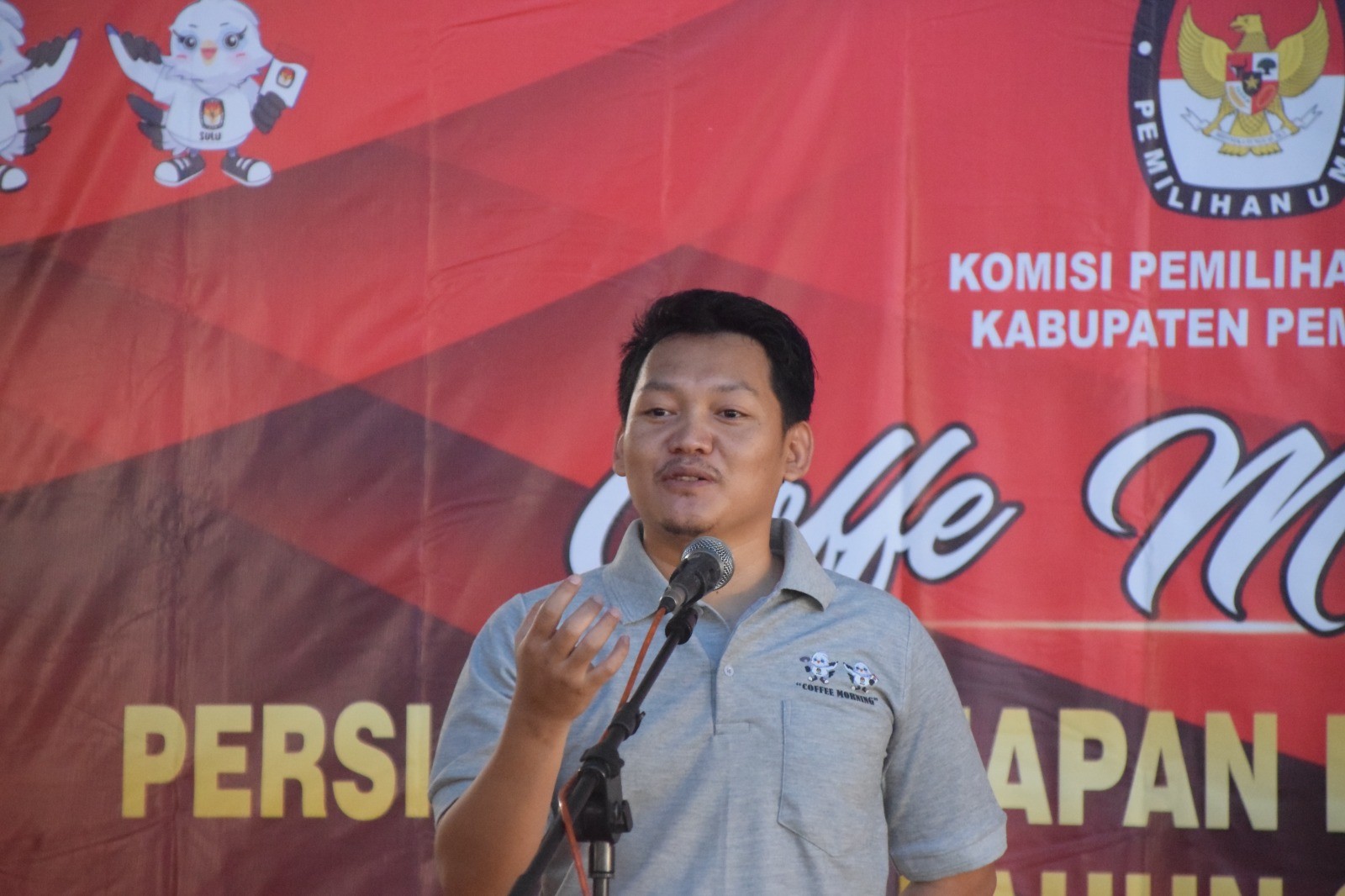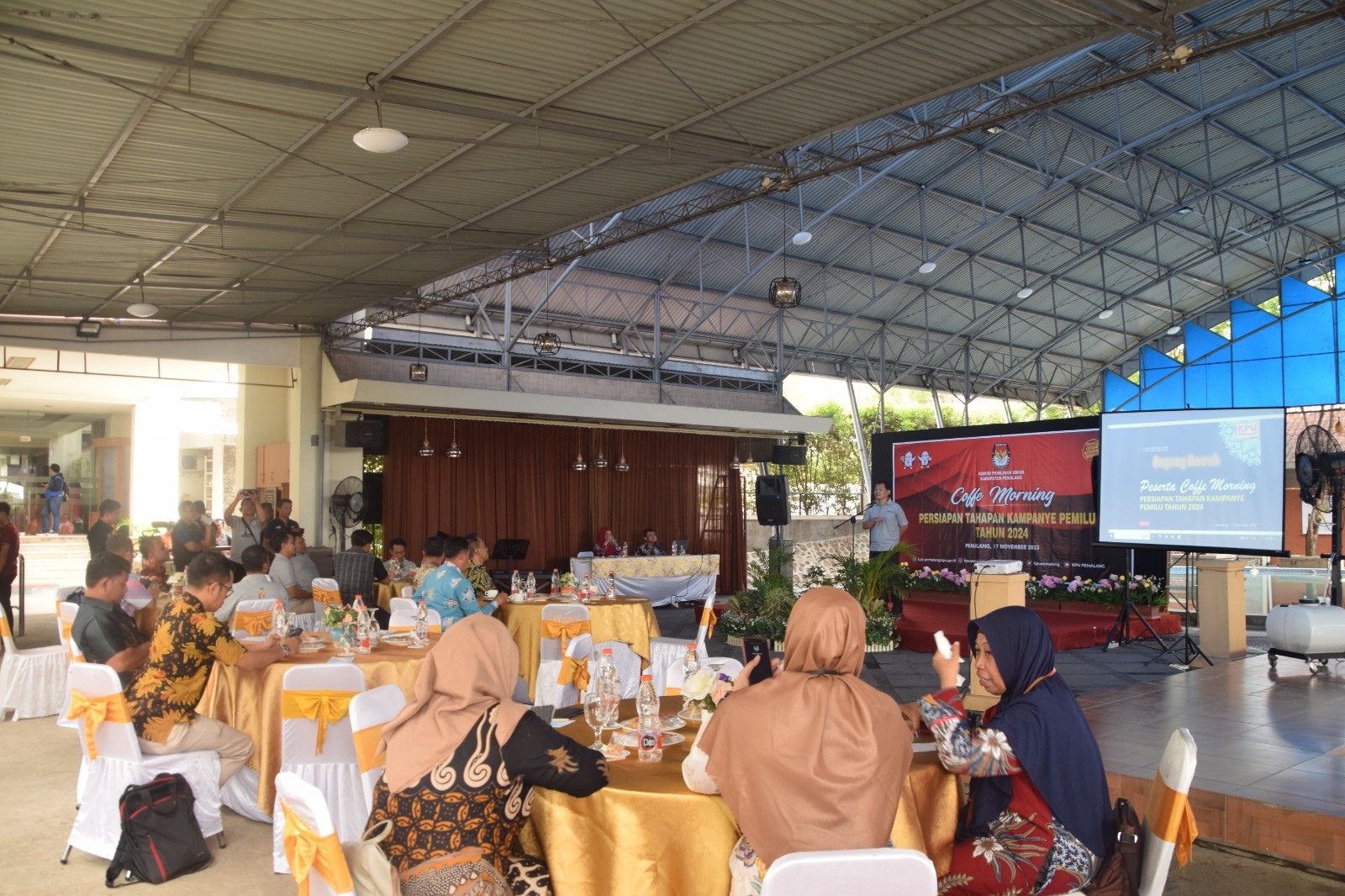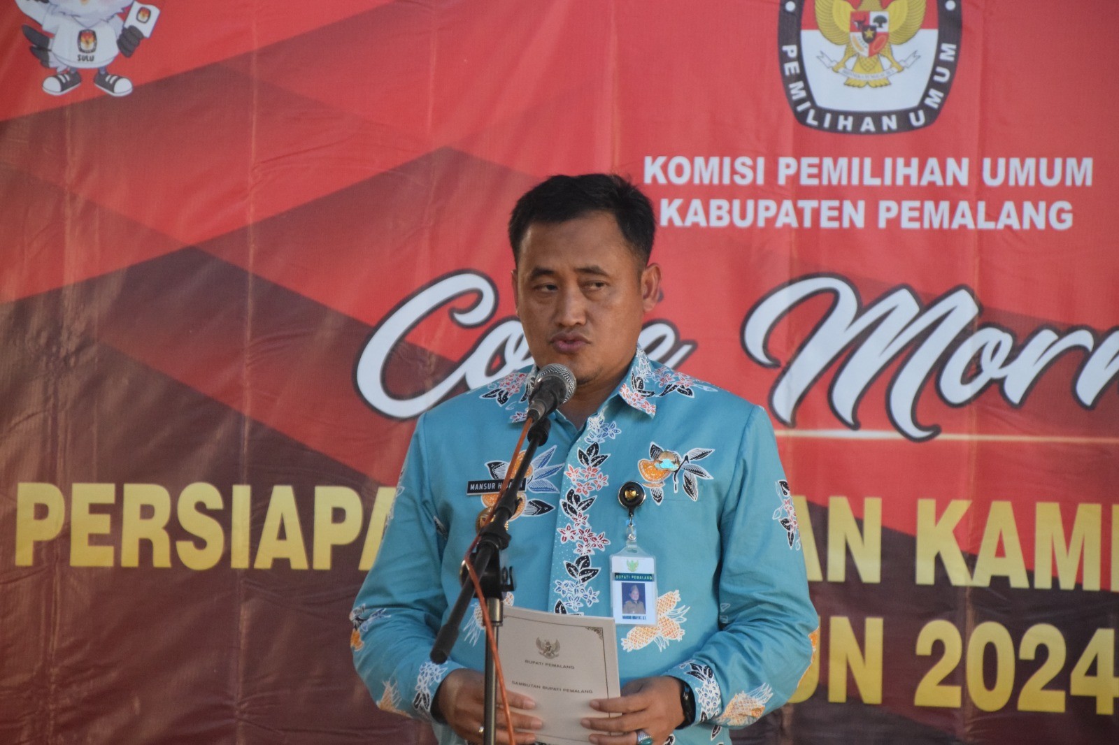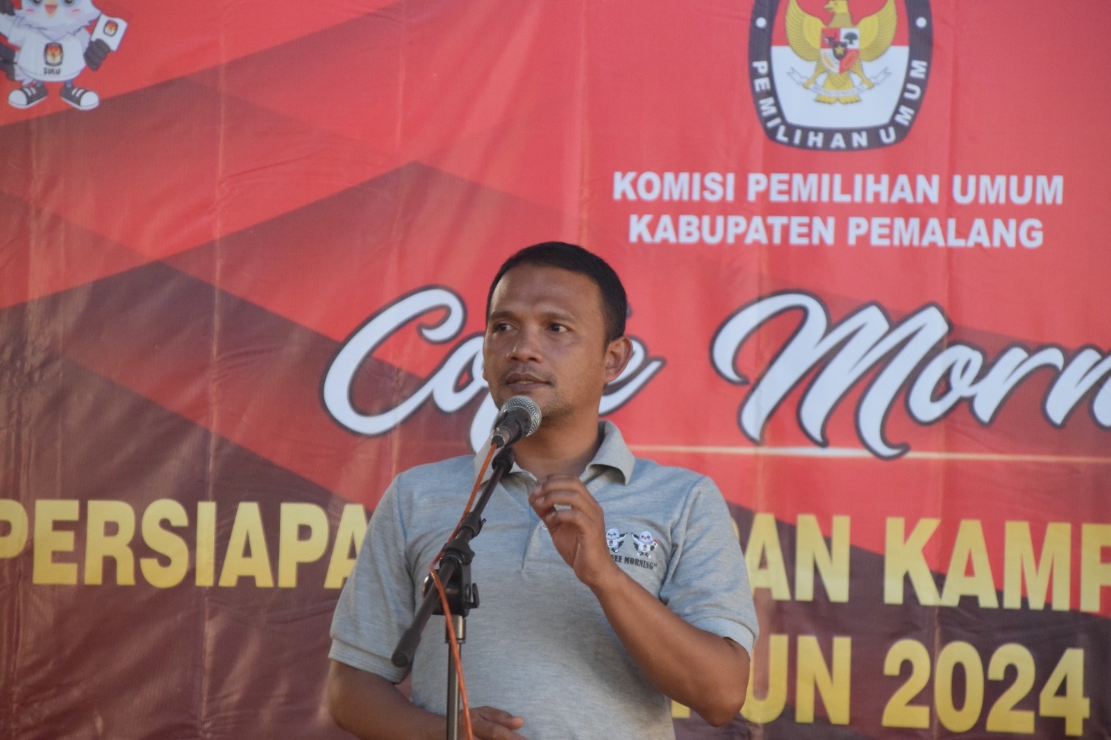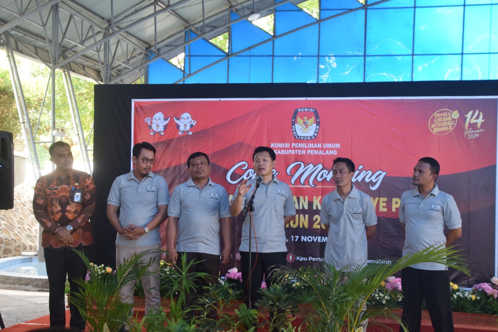 KPU Kabupaten Pemalang menggelar Coffee Morning persiapan pelaksanaan Kampanye Pemilu Tahun 2024, Jumat (17/11/2023) di Hotel Regina Pemalang. Hadir pada kegiatan tersebut Bupati Pemalang beserta Forkopimda Kabupaten Pemalang dan Bawaslu Kabupaten Pemalang. Acara dibuka oleh Ketua KPU Kabupaten Pemalang Agus Setiyanto sekaligus memperkenalkan Anggota KPU yang terlantik periode 2023-2028. Bapak Bupati Pemalang Mansur Hidayat turut memberikan sambutan pada kegiatan tersebut.